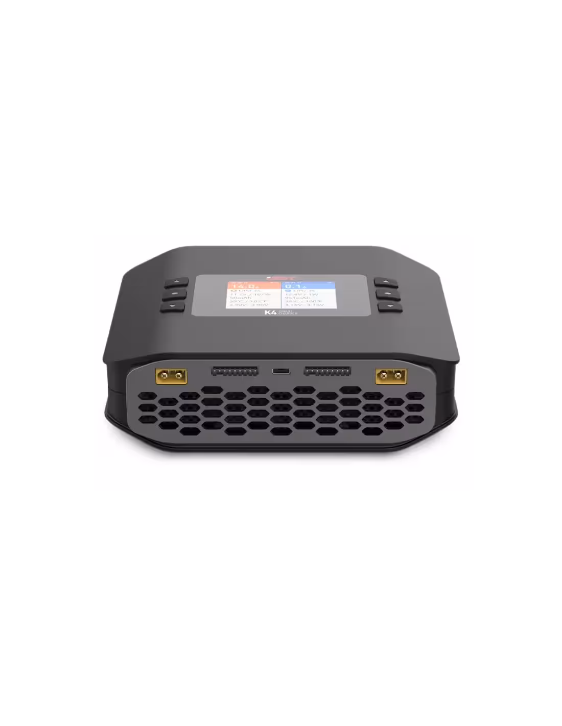 Chargeur rapide puissant à deux canaux avec équilibreurs pour 1 à 18 cellules NiCd/NiMH ; 1 à 8 cellules LiPo/Li-ion/LiFe (1 à 7S)/LiHV/ULiHV, 2 à 28 V Pb avec courant 0,2 à 20 A (max. 2 x 200 W sur secteur ou 2 x 600 W sur courant continu). Décharge 2 x 0,2 à 3 A (max. 2 x 30 W). Alimentation 10 à 34 V/230 V. Mesure de la résistance interne, Bluetooth pour le réglage via le système de module de batterie BattAir Smart et l'application.
