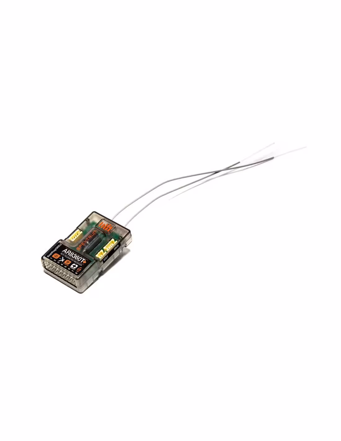 Le récepteur de télémétrie Spektrum™ AR8360T+ est un récepteur 8 canaux compatible DSM2®/DSMX®, conçu pour divers avions grâce à son format compact. Il offre une stabilisation AS3X+® et SAFE® intégrée, avec un nouvel algorithme AS3X+ qui améliore les performances de vol et la précision des capteurs, et qui offre un débit de données accru. Cette technologie procure aux pilotes une expérience de vol différente, sans retard de réponse ni limites sur les courses de commande. Vous aurez l'impression de piloter un modèle réglé par des experts, répondant précisément à vos commandes.