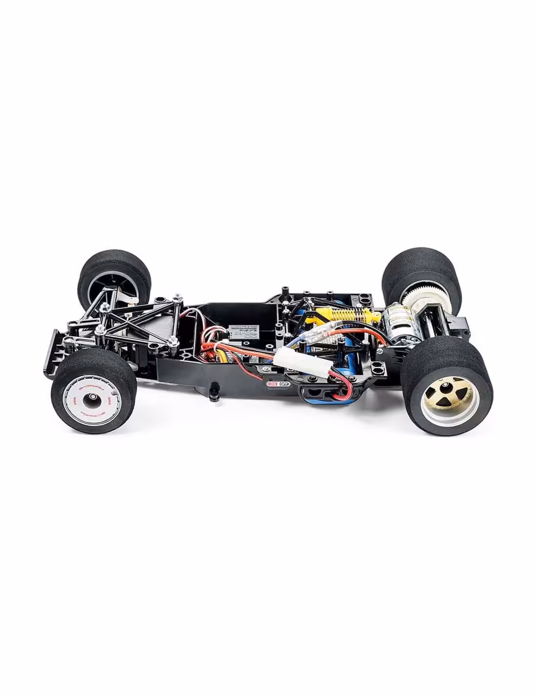 Basé sur une baignoire en plastique ABS, avec des cadres spatiaux à l'avant et à l'arrière et des plaques FRP, le châssis est une conception composite qui offre une base rigide pour soutenir la suspension fluide : le résultat est une expérience de conduite vive et réactive. À l'avant, il est doté d'une suspension indépendante à ressorts hélicoïdaux, tandis que la suspension rigide arrière est une conception à 3 points avec une barre en T FRP de 1,5 mm d'épaisseur et un seul amortisseur à huile CVA ; associés à des pneus spongieux à l'avant et à l'arrière, ils assurent une superbe traction sur l'asphalte lisse et les surfaces recouvertes de moquette. De plus, l'utilisation d'entretoises permet deux configurations de garde au sol différentes à l'avant et trois à l'arrière.