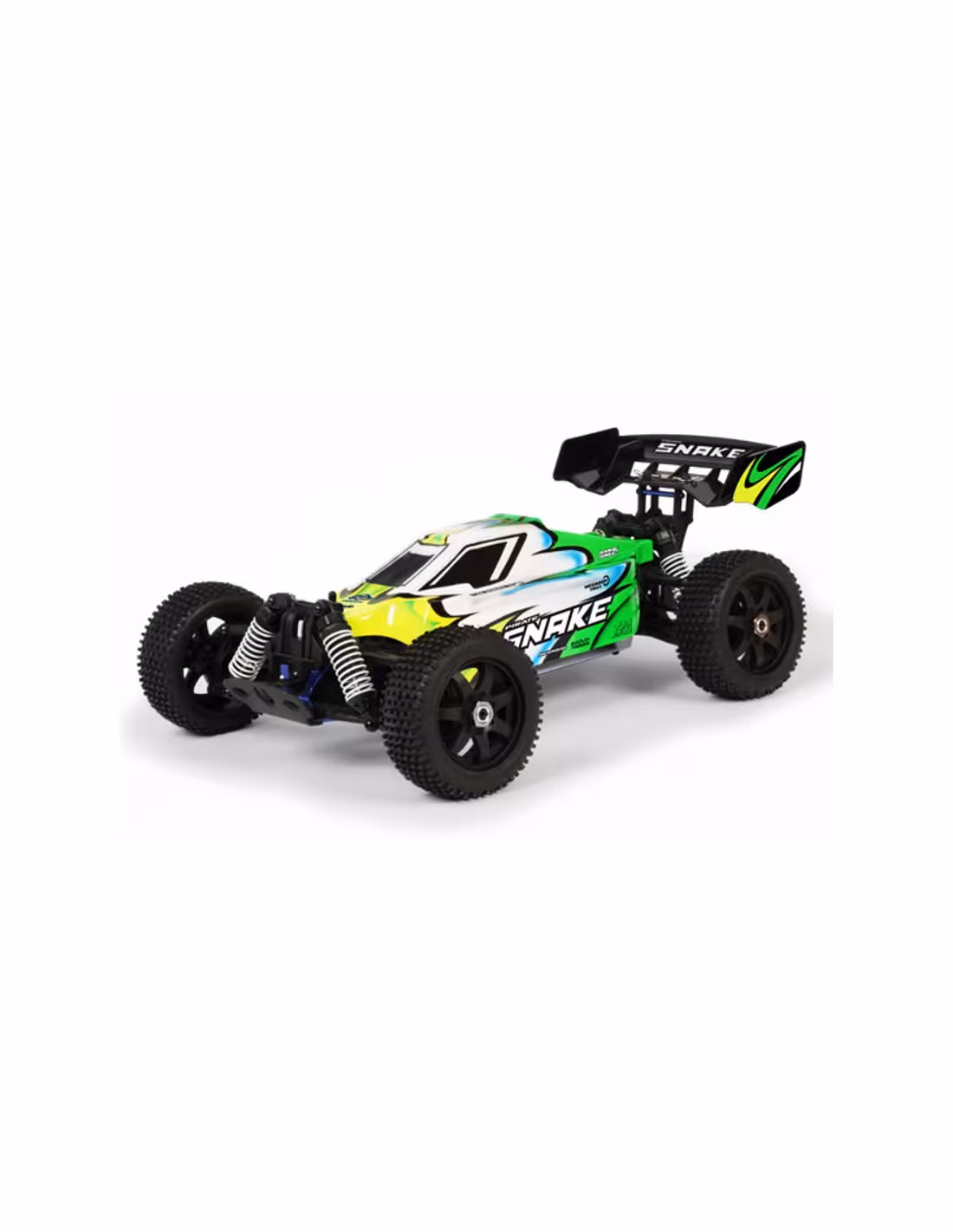 Le Pirate Snake de chez T2M est un Buggy avec moteur brushless livré complet avec batterie lipo, chargeur , et radio . Ce modèle n'a rien à envier aux modèles plus haut de gamme , il possède d'origine un châssis en aluminium anodisé, 2 différentiels, à l'avant des cardans en acier, la carrosserie peinte et décorée , des roues avec des hexagones de 17mm un carter primaire etanche et un variateur de 60A refroidi .il suffit de charger la batterie lipo en 2 éléments avec le chargeur fourni dans le kit et vous serez prêt à rouler .