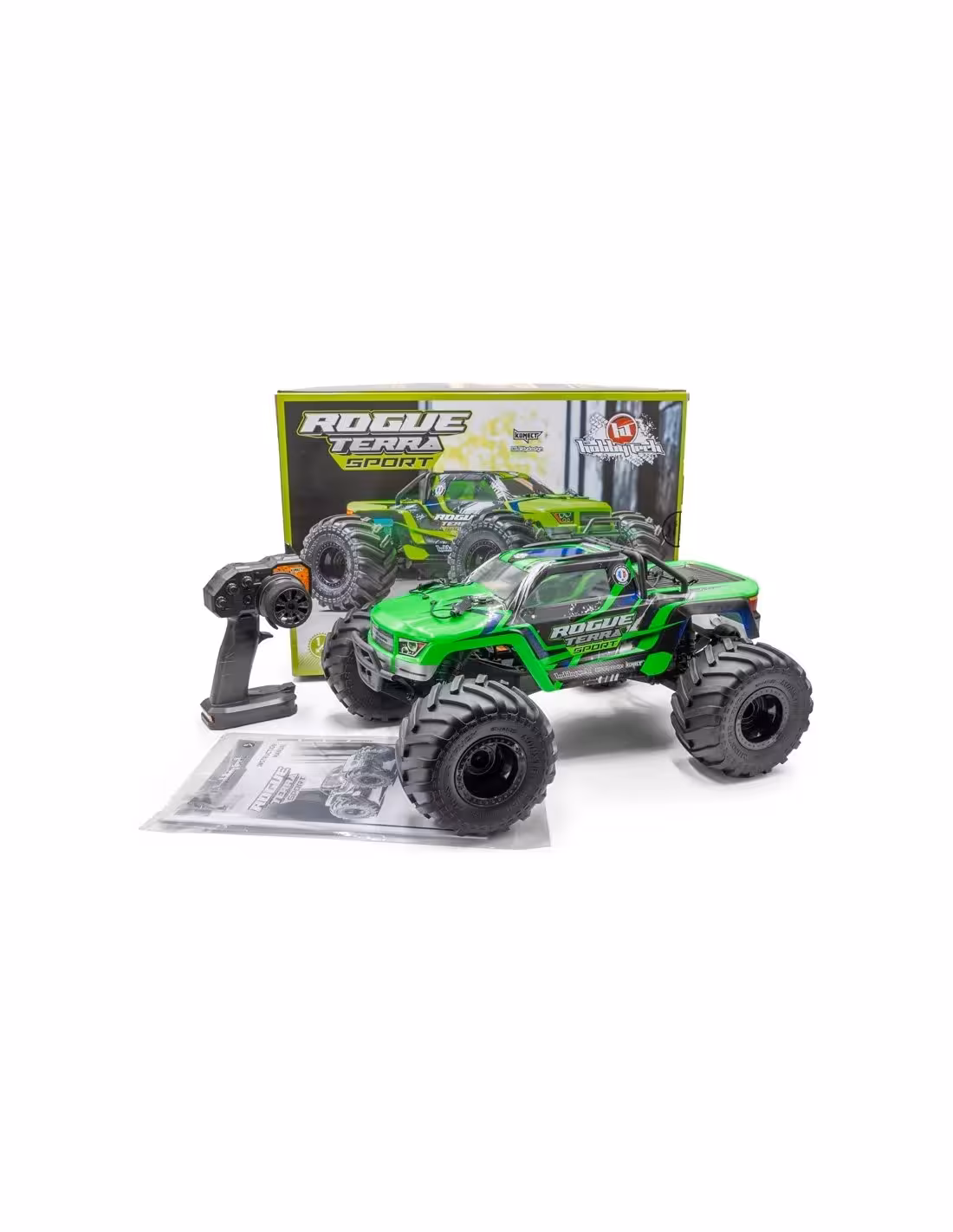 Le Monster Truck Rogue Terra Sport Brushless de Hobbytech va vous surprendre par ces performances et son agilité. Sa conception avec son châssis renforcé 4×4 de toute dernière génération et sa mécanique fiable vous assurera de nombreuses séances de roulage. La transmission est totalement montée sur des roulements à billes, des différentiels à pignons métal qui sont un gage de qualité. Des amortisseurs hydrauliques réglables par une simple molette pour jouer sur la garde au sol de la voiture. L'ensemble de la Rogue Terra Sport est livré dans une version RTR, c'est-à-dire prêt à rouler avec une nouvelle génération de télécommande en 2,4GHz à volant.