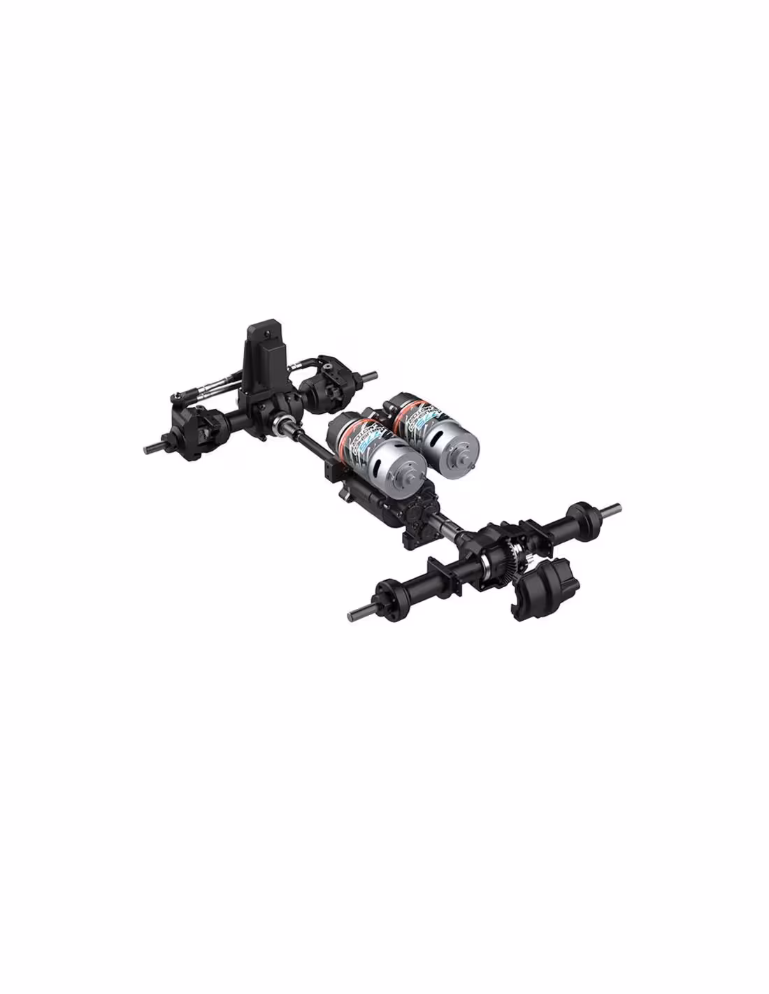 La boîte de vitesses TL4 adopte un angle spécial de type V, deux moteurs 775 et deux vaiateurs 880, un ensemble de pignons métalliques avec deux rapports. Le maximum peut être modifié avec deux moteurs 4274, fournissant à la voiture un couple important. Essieux avant et arrière robustes entièrement métalliques, demi-arbres de sortie de 8 mm, pour répondre à la capacité de remorquage à couple élevé.