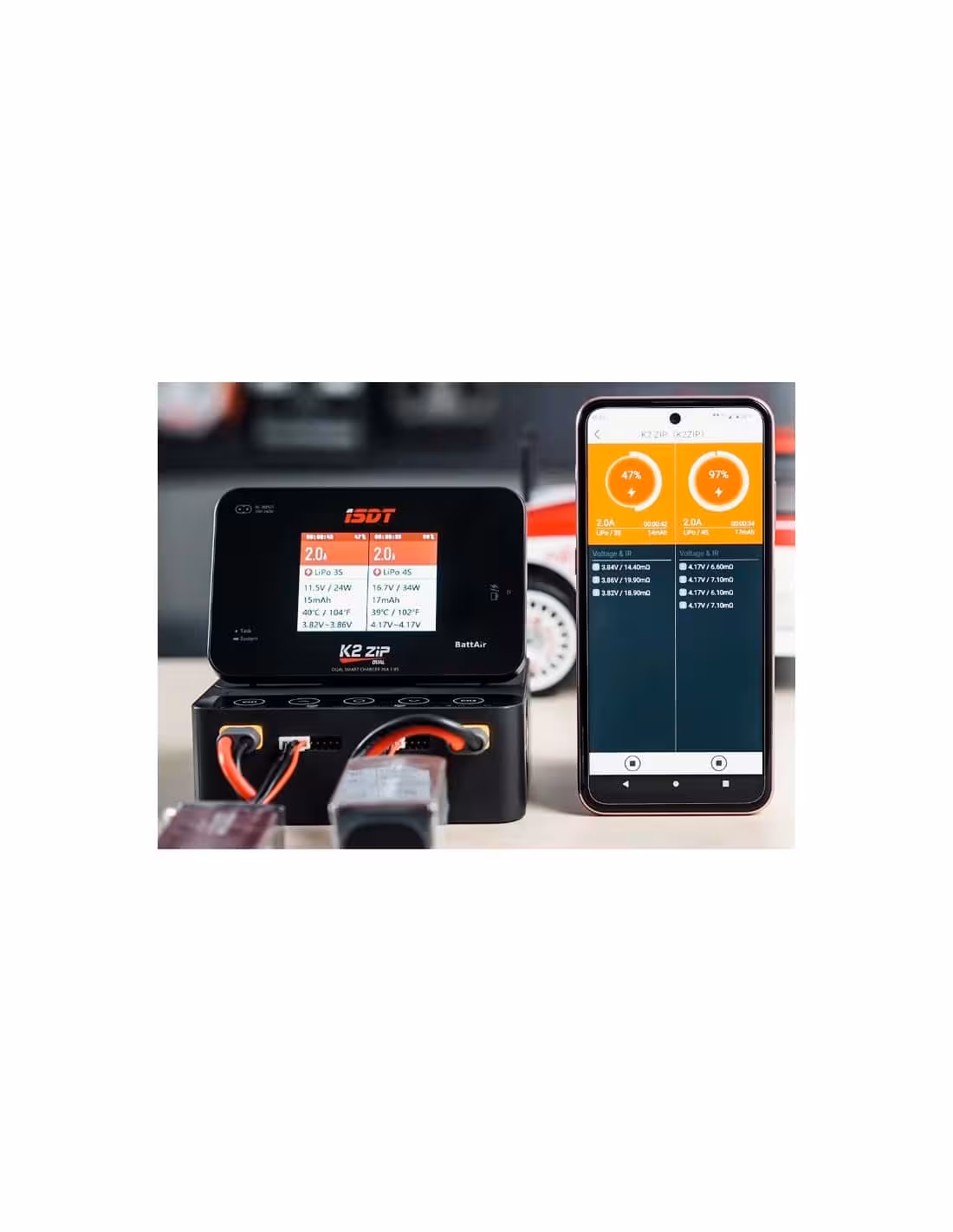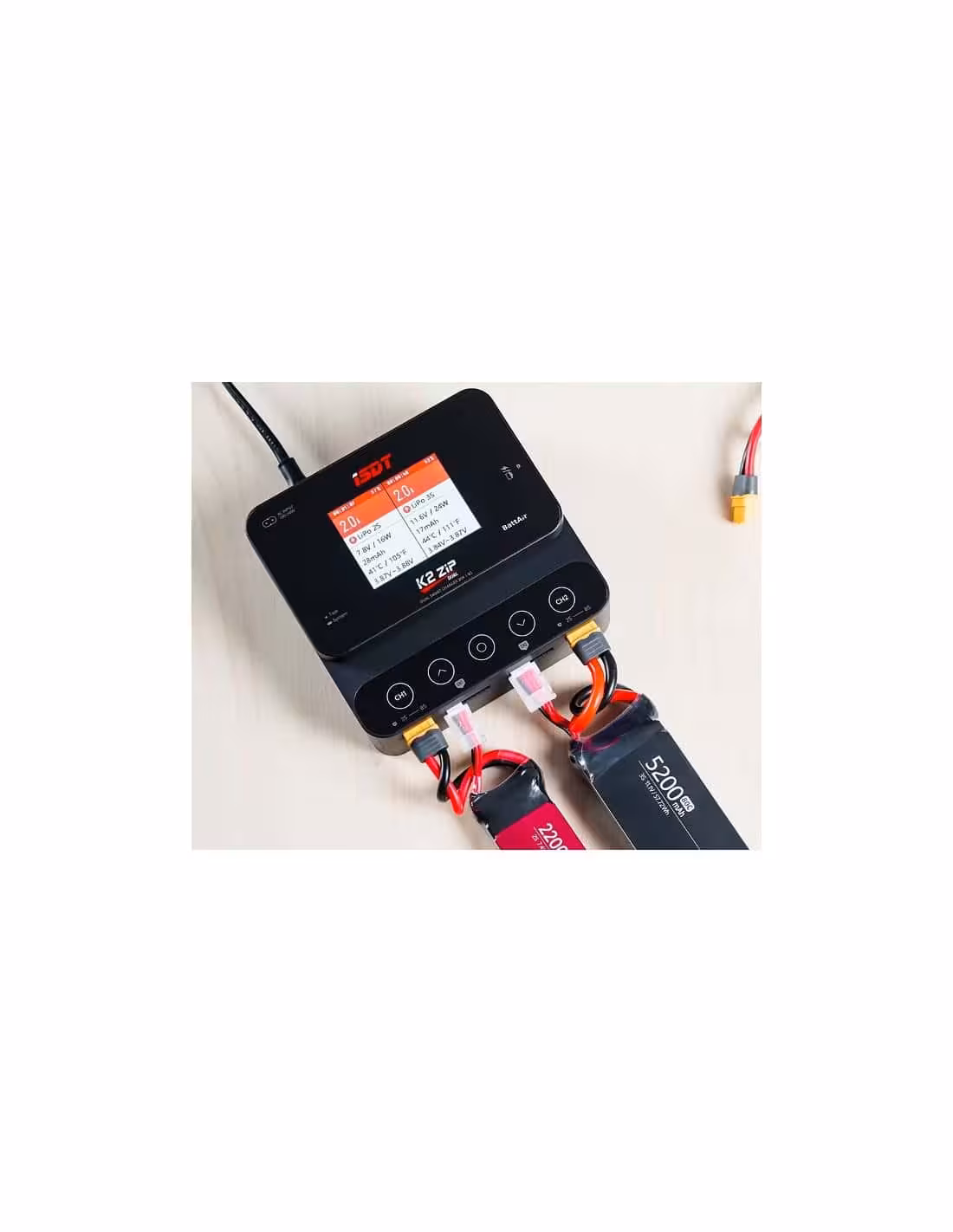 Le chargeur de batterie ISDT K2 Zip Lipo est une solution de charge avancée, polyvalente et performante, spécialement conçue pour prendre en charge différents types de batteries, notamment LiPo, LiHv, Li-ion, NiMH et Pb. Capable de gérer des batteries allant de 1 à 8 cellules (1-8S), il propose des fonctionnalités de charge et de décharge adaptées . Doté de deux canaux indépendants, ce permet une charge simultanée avec une puissance impressionnante de 500 W par canal, associé à un courant de charge pouvant atteindre 20 A. Cette conception garantit une flexibilité optimale pour charger plusieurs batteries rapidement.Son interface utilisateur intuitive offre une navigation simplifiée, permettant une configuration rapide et un suivi précis des paramètres de charge.