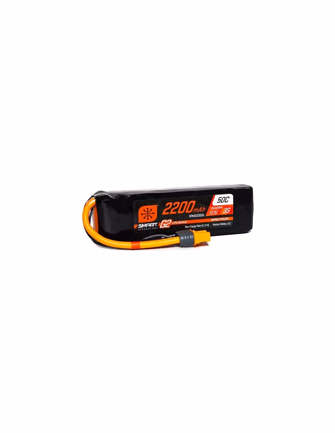 Les pilotes bénéficient de l'avantage Smart avec les batteries LiPo Spektrum™ Smart G2 50C. Non seulement les paramètres de charge et les données de performances sont stockés et téléchargés automatiquement sur les chargeurs Smart, mais aucun câble d'équilibrage n'est nécessaire : une seule connexion "IC" simple ! Batterie 2200 MAh à utiliser avec un chargeur Smart G2 .