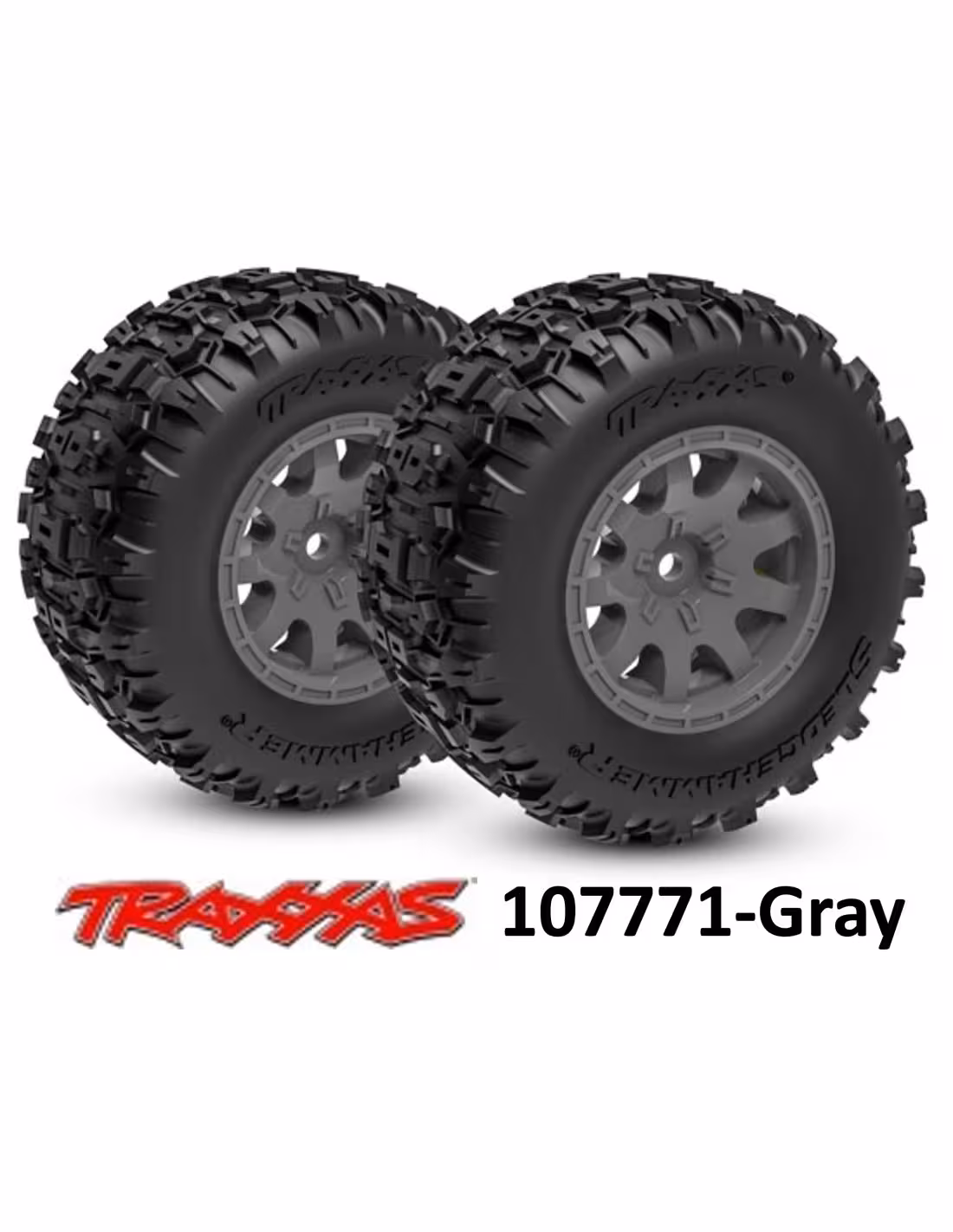 Mini Maxx roues avantde remplacement livrées complète avec pneu collé sur la jante . Set de 2 roues . Traxxas 1771 Gray .