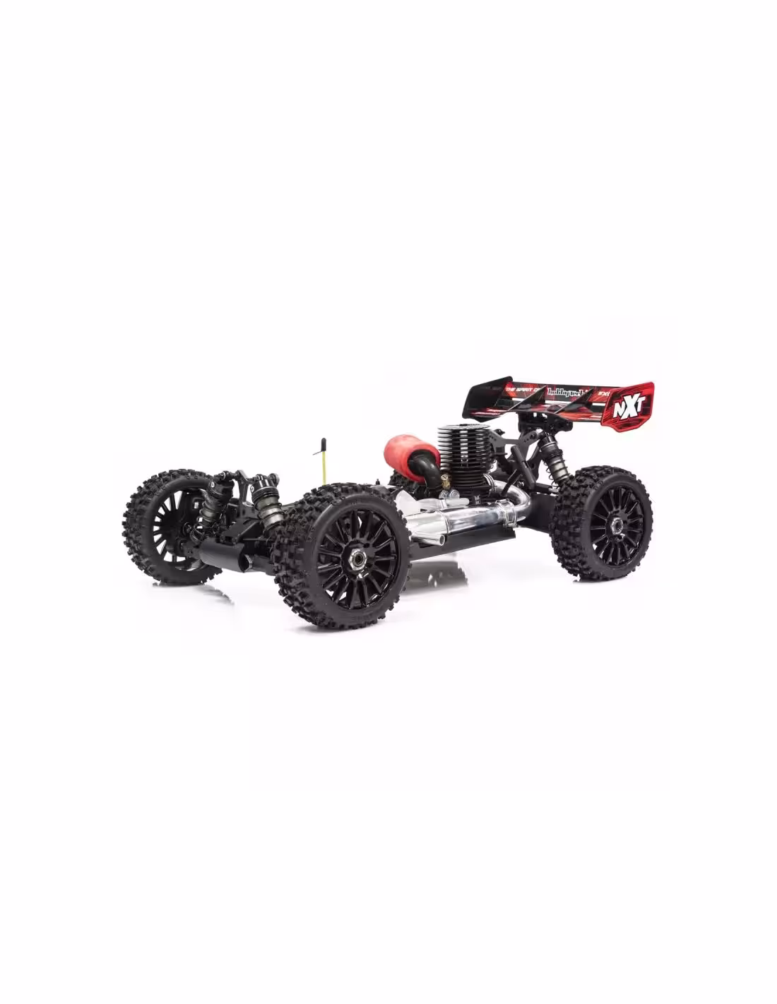 Voici le Spirit NXT à moteur Thermique de Hobbytech qui est une marque Française un gage de qualité de de disponibilité des pièces de rechange . Ce modèle de compétition est équipé de moteur de 3,5 cc avec démarrage à tirette . C'est un modèle à quatre roues motrices équipé d'amortisseurs a gros volume d'huile pour un meilleur comportement en tout terrain . Ce modèle est RTR ce qui signifie qu'il est assemblé et équipé de toute l'électronique .Il suffit d'ajouter des piles pour la radio-commande du carburant , chauffer la bougie et c'est parti !