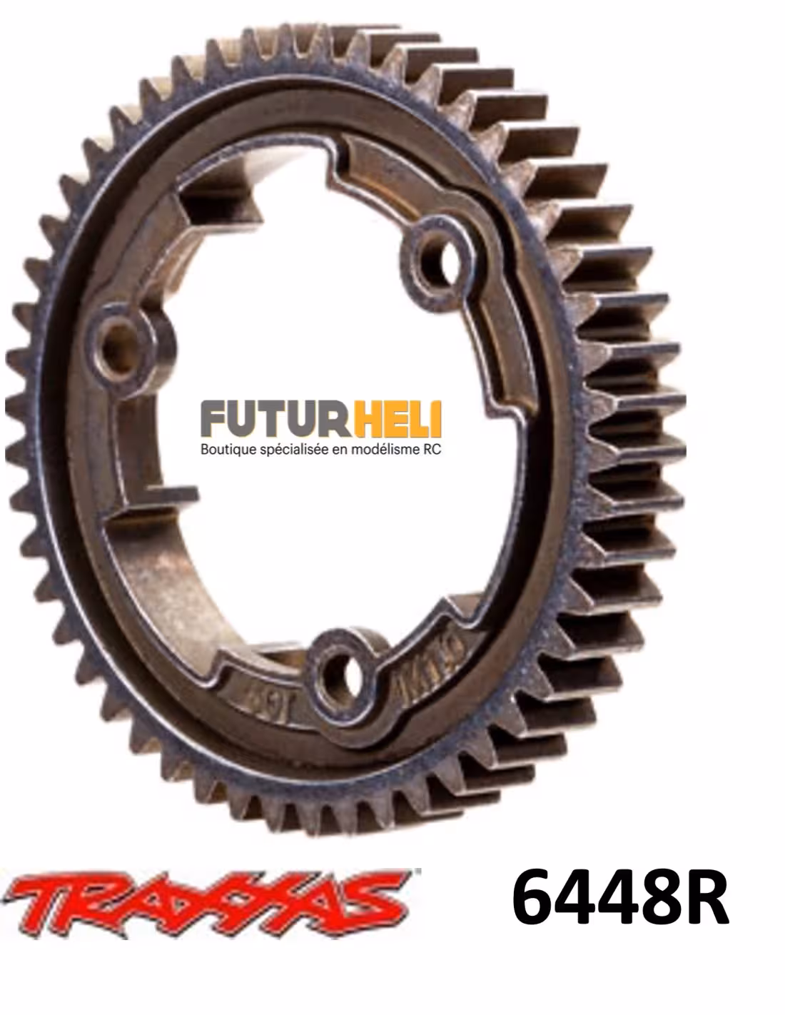 L'engrenage droit à 50 dents (pas métrique de 1,0) est doté de dents en acier extra-larges pour une puissance et une durabilité maximales. Les engrenages droits Traxxas vous permettent d'optimiser les performances de votre modèle Traxxas. Changer les rapports de démultiplication permet d'équilibrer l'accélération et la vitesse de pointe selon les conditions de conduite. Veuillez consulter votre manuel du propriétaire pour plus d'informations sur les options d'engrenages recommandées pour votre modèle.