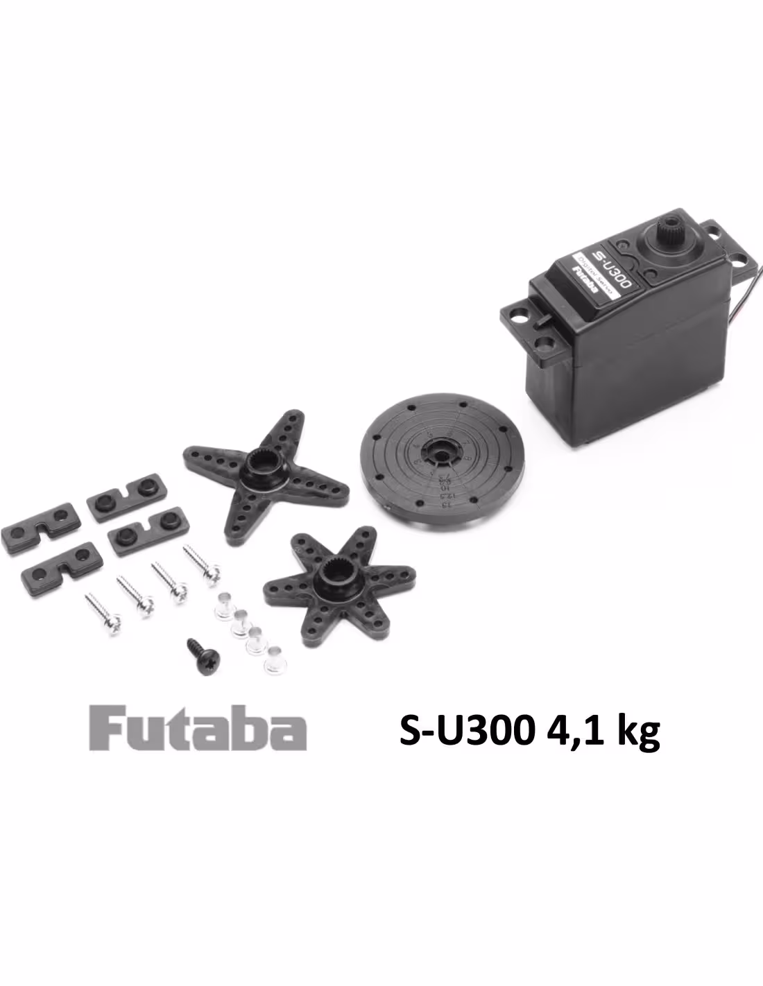 Servo Futaba S-U300 numérique adapté aux avions , voiture , bateaux . D'une taille standard il est compatible 4,8v et 6V poids 37g , livré en vrac ( en sachet sans boite )