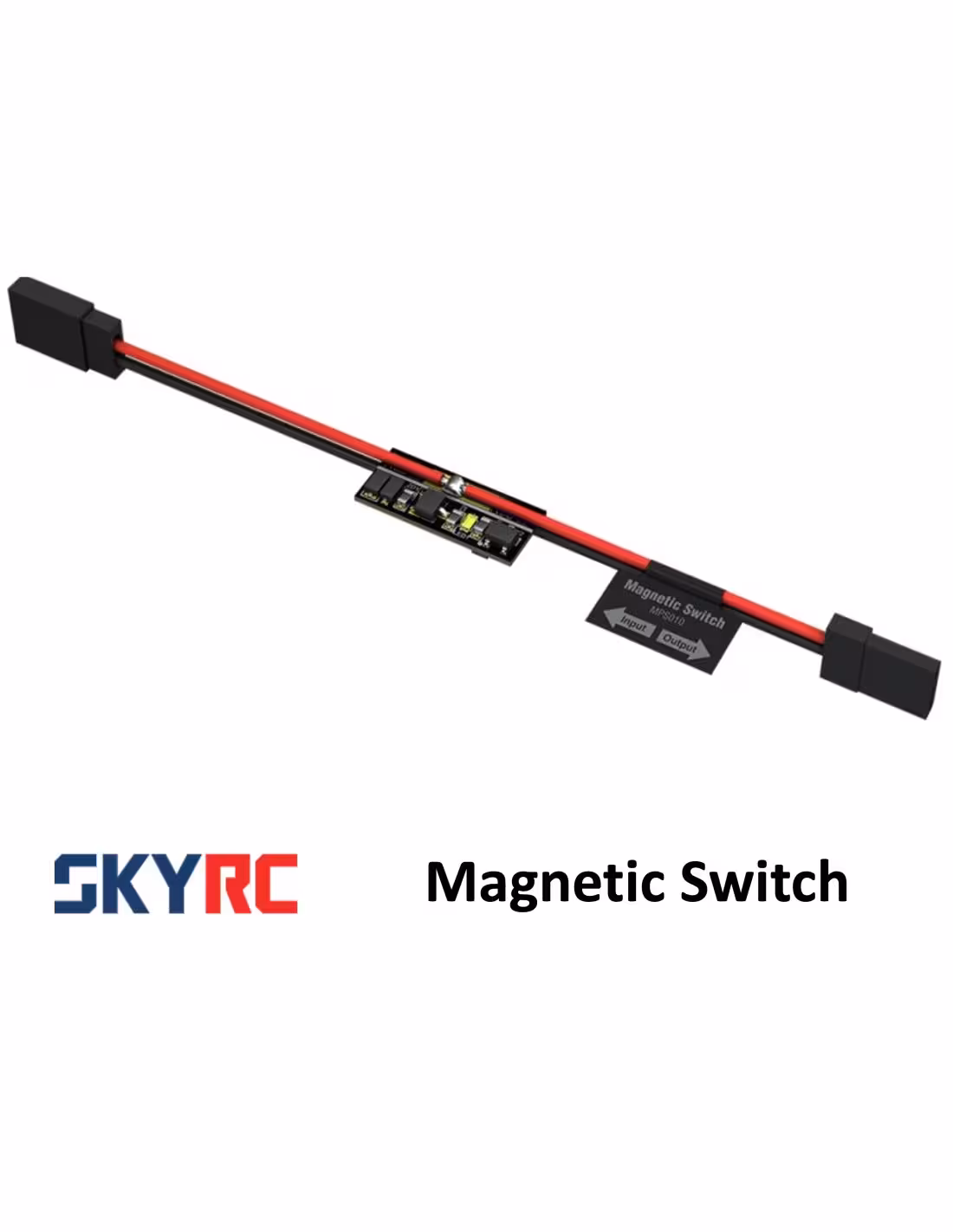 3Remplacez votre inter traditionnel et peu fiabe par un magnétique comme le SkyRC référence SKY600155-01 disponible chez Futurheli . Il passe 7A en continu et résiste à 10 A en pointe . Livré avec un aimant et un autocollant de localisation . Evite de percer votre fuselage ou votre carrosserie de voiture .