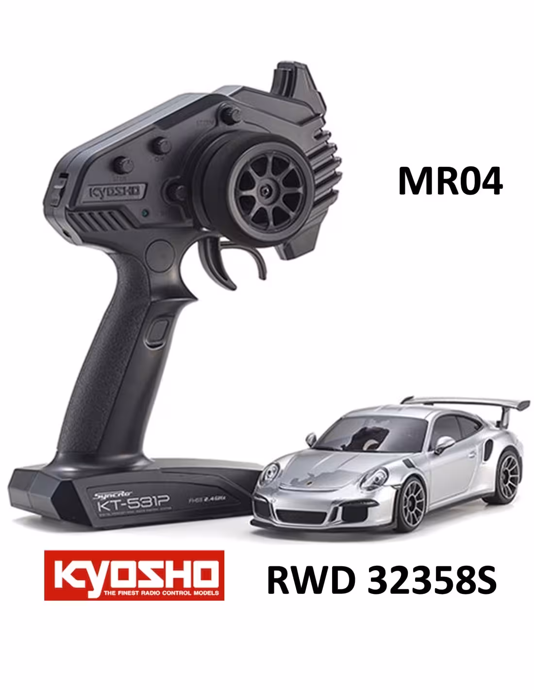 Nouvelle évolution des mini-Z avec la série MR-04 de la Porsche 911 GT3 RS . Nouvelles fusées avant , montage sur roulements , nouveau carrossage du train avant pour une tenue de route optimale . livrée avec radio Syncro KT-531P .
