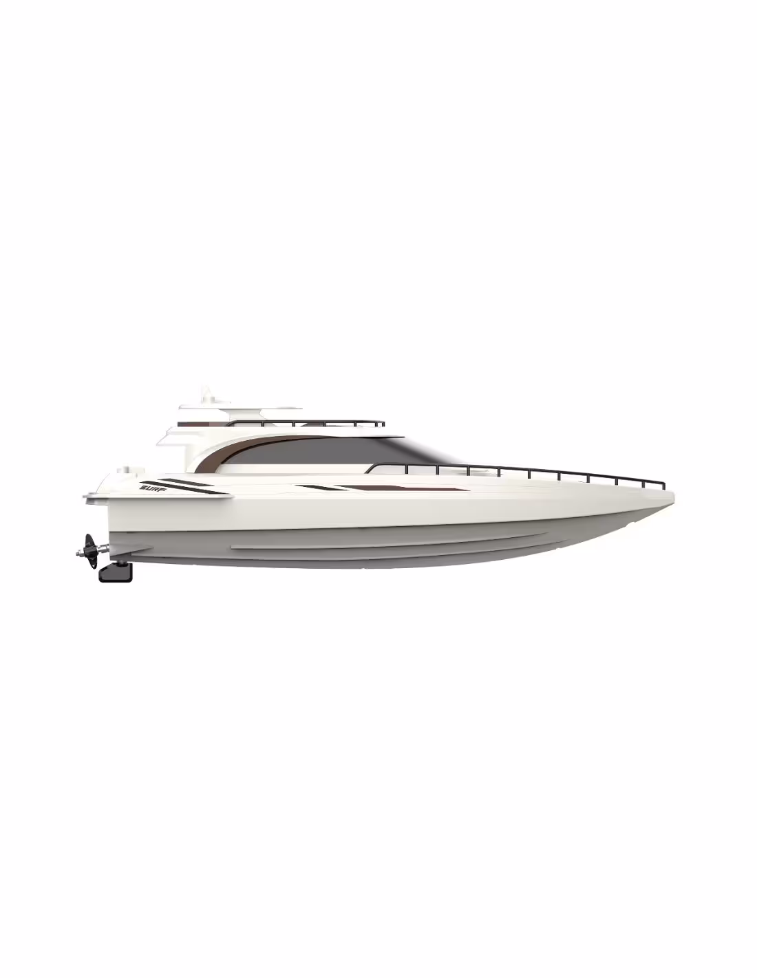 Son esthétique est saisissante : le pont avant plat avec un grand bain de soleil, les fenêtres occultantes et le design intemporel de la coque, conçu pour une navigation dynamique, soulignent son caractère sportif. Avec son élégant coloris brun-blanc crème, ce bateau de course RC impressionne sur le lac, l'étang ou la piscine par beau temps.Disponible en version RTR (prête à fonctionner), tous les composants nécessaires à son fonctionnement sont inclus, à l'exception des piles de la télécommande. Grâce à sa télécommande pistolet 2,4 GHz moderne, il est également possible d'utiliser plusieurs modèles sur l'eau sans interférence. Ainsi, les amis peuvent jouer ensemble.