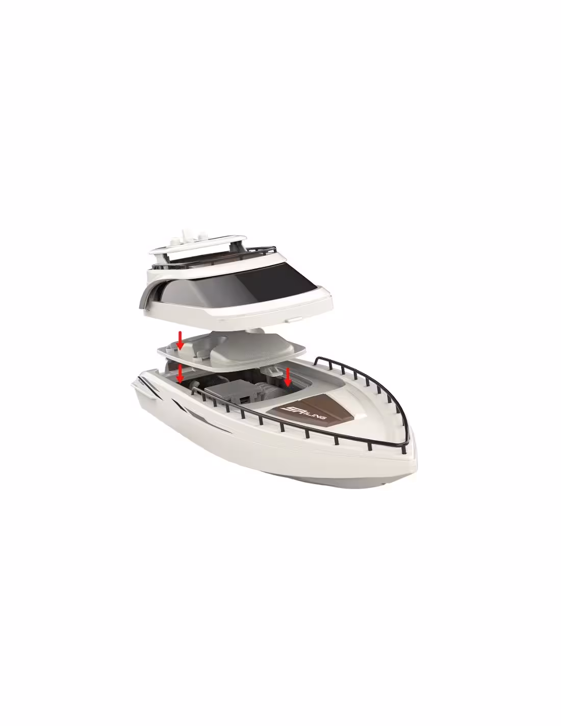 - Fonction de sécurité : le bateau ne démarre que dans l'eau