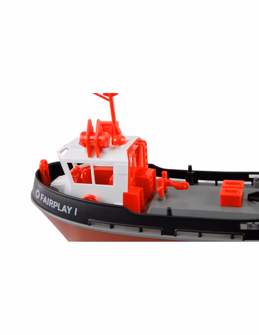 Découvrez le plaisir de piloter un remorqueur portuaire miniature : ce modèle réduit de bateau RTR pour enfants de 8 ans et plus est une réplique détaillée, livrée avec une batterie puissante et un chargeur. Il vous suffit d'ajouter des piles standard à la télécommande et le plaisir peut commencer. Les deux hélices intégrées à l'arrière offrent non seulement une propulsion puissante, mais aussi une direction précise et entièrement proportionnelle. Grâce à un servomoteur intégré, vous pouvez orienter le bateau rapidement et avec souplesse dans la direction souhaitée. Ce bateau à l'échelle 1:72 est encore plus maniable et votre plaisir de pilotage est encore plus grand. Grâce à sa taille compacte et à sa construction robuste, ce modèle est idéal pour une utilisation dans votre piscine ou sur de petits plans d'eau. En cas d'obstacle, ce remorqueur peut même faire marche arrière. La télécommande 2,4 GHz sans interférences permet un contrôle fiable avec une portée allant jusqu'à 40 mètres. Grâce aux accessoires à l'échelle fournis, vous pouvez personnaliser la cabine et l'équiper d'éléments tels qu'une antenne, une tour radar et un mât de transmission. La cabine et le compartiment à batteries sont facilement amovibles, ce qui facilite leur manipulation. Autre atout : l'éclairage LED qui illumine la cabine, offrant une expérience palpitante même au crépuscule. Le couvercle de coque verrouillable protège le compartiment à batteries de l'eau, garantissant un plaisir de navigation optimal. Préparez-vous à des aventures inoubliables avec ce modèle réduit de bateau captivant.
