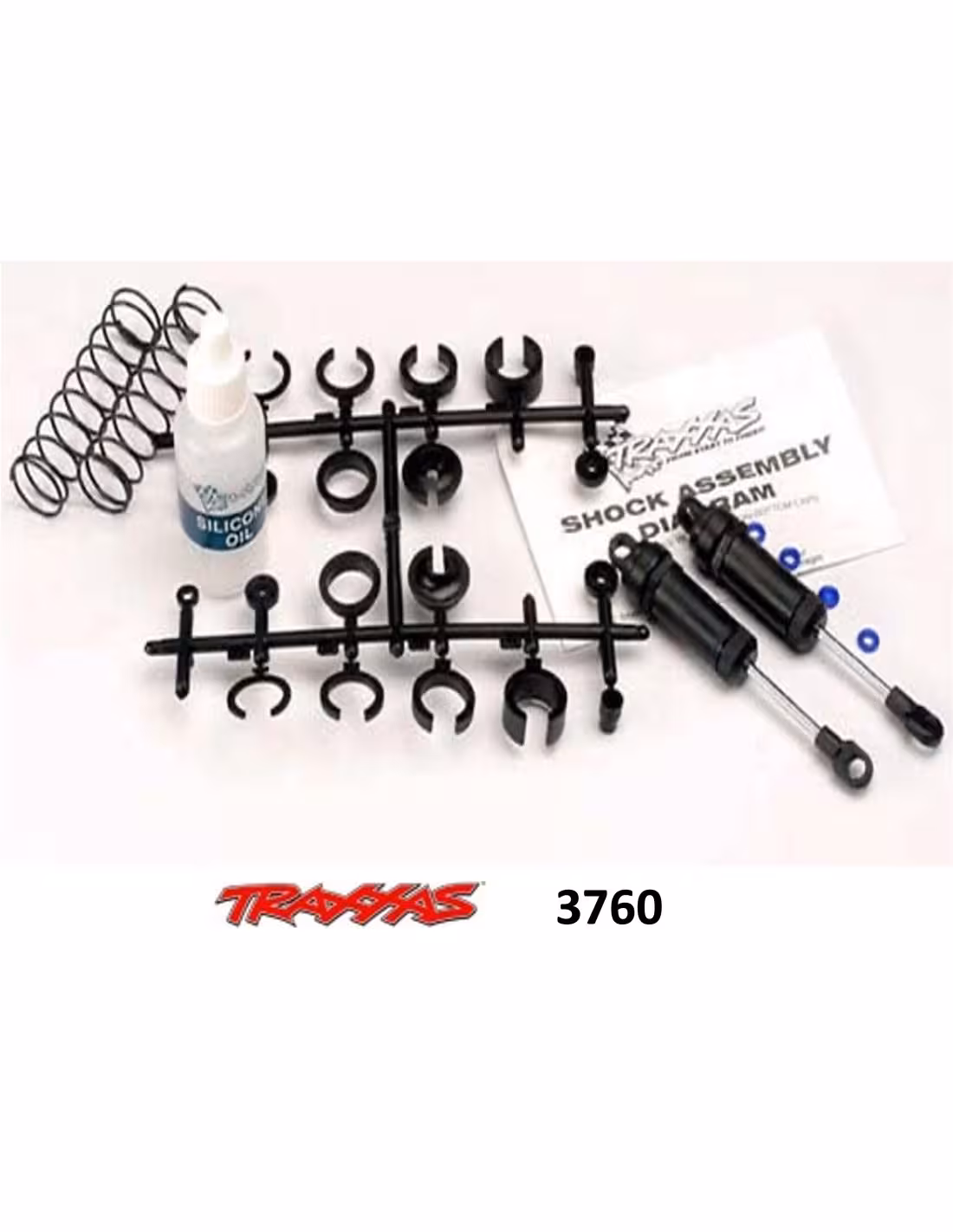 Ensemble de 2 amortisseurs complets à assembler noirs avec ressorts noirs compatible Mini-Maxx et Mini-XRT . Référence Traxxas 3760 .