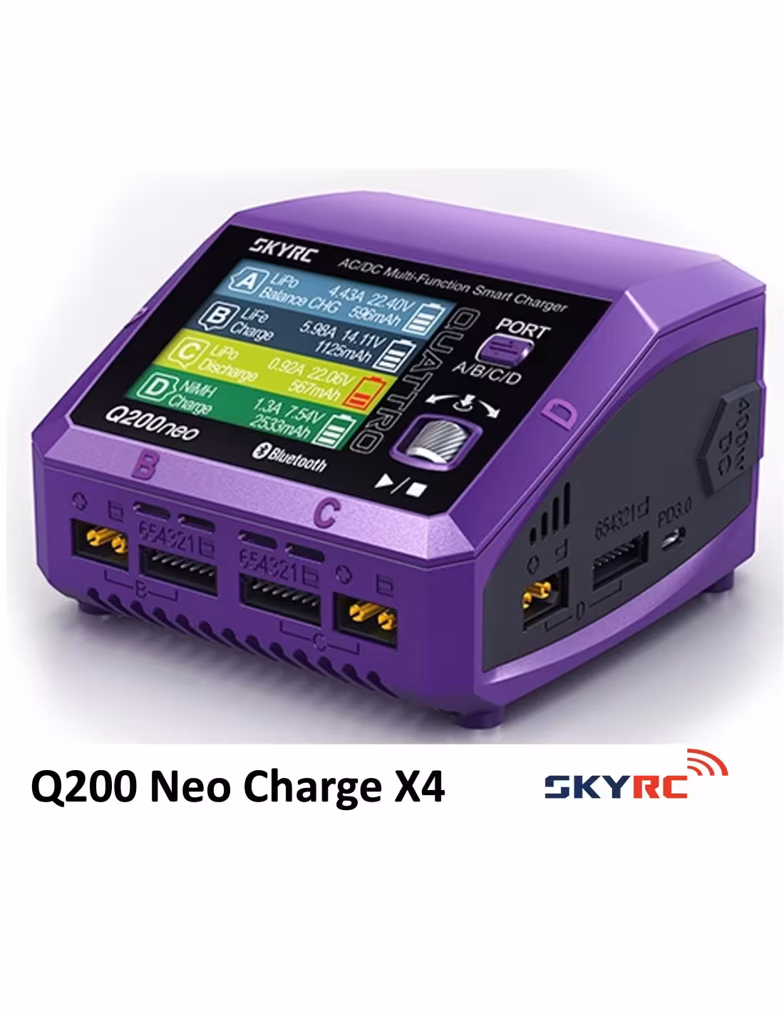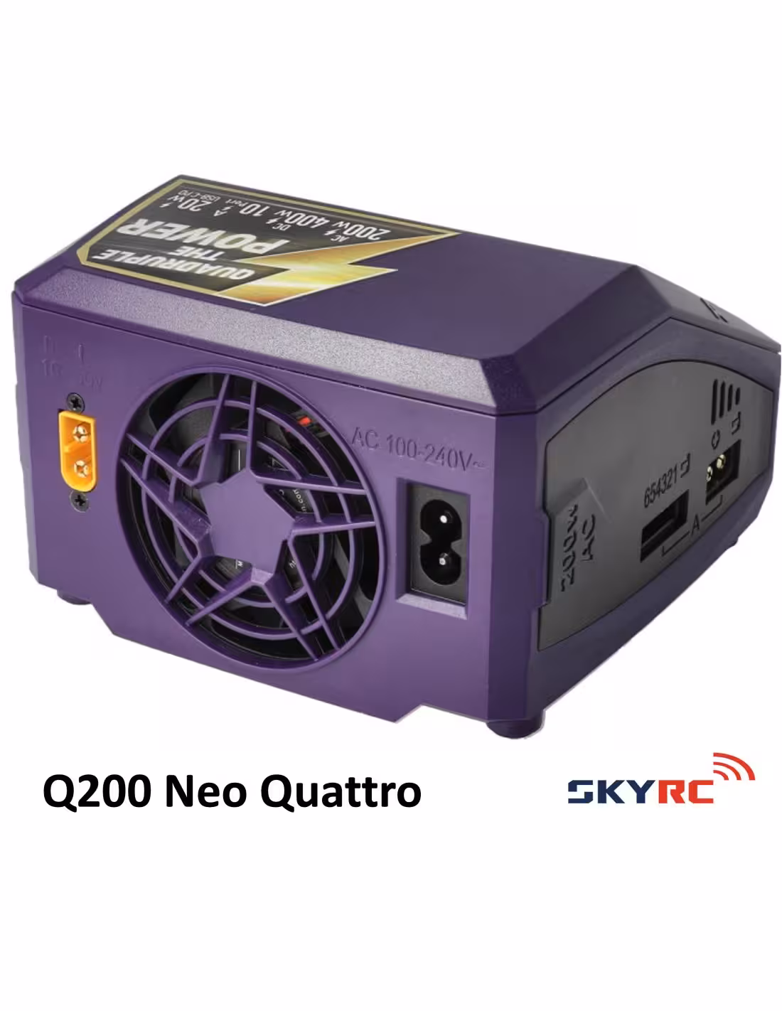 Chargeur Puissant SkyRC modèle Q200 Néo . Il est doté de 4 ports de charge Il délivre une puissance totale remarquable de 400 W avec jusqu'à 10 A par port . Que vous soyez un professionnel chevronné ou un amateur passionné, le Q200neo garantit que vos batteries seront toujours prêtes à alimenter vos aventures RC palpitantes. Dites adieu aux temps d'arrêt et profitez du potentiel illimité de vos activités RC avec le chargeur SkyRC Q200neo.