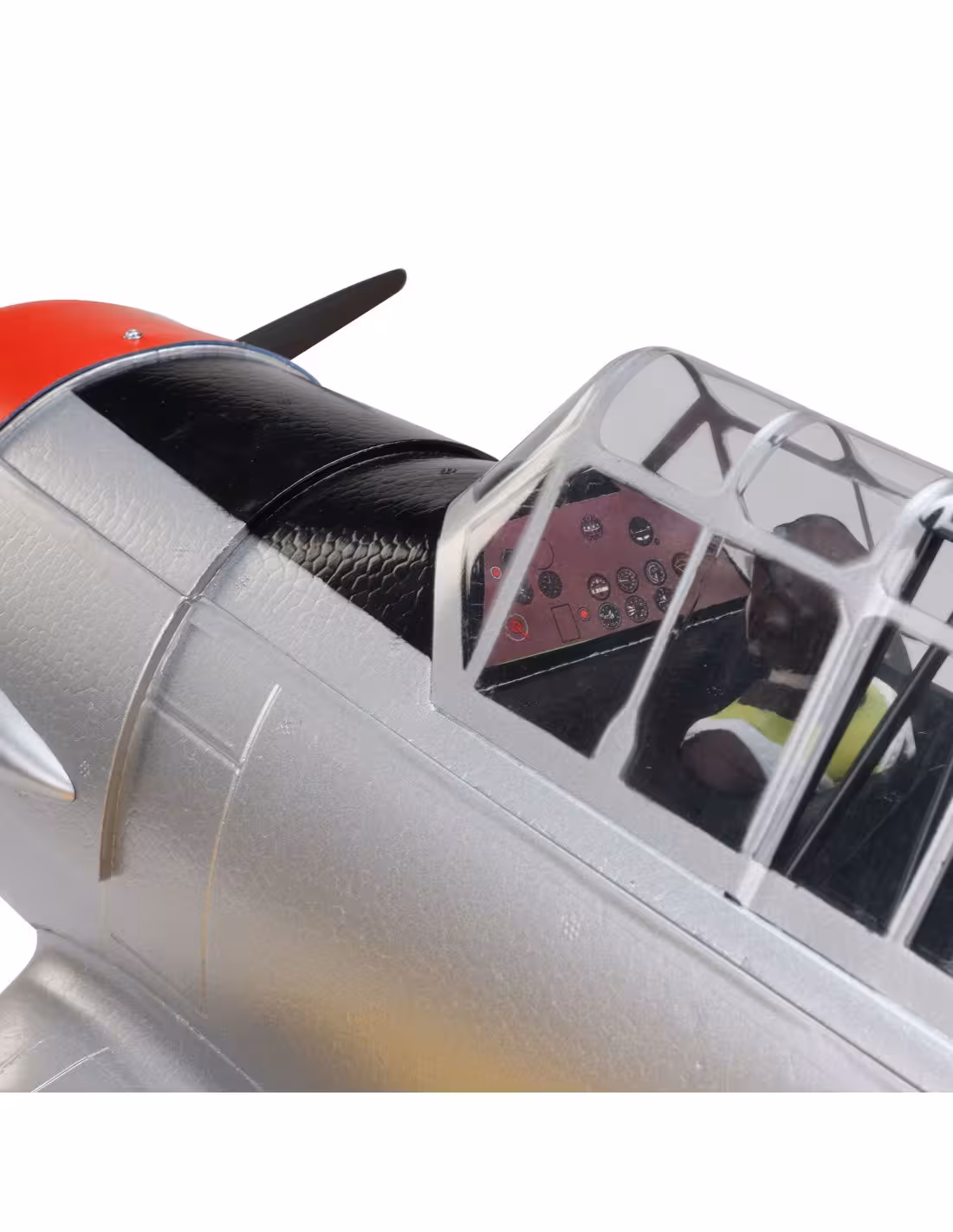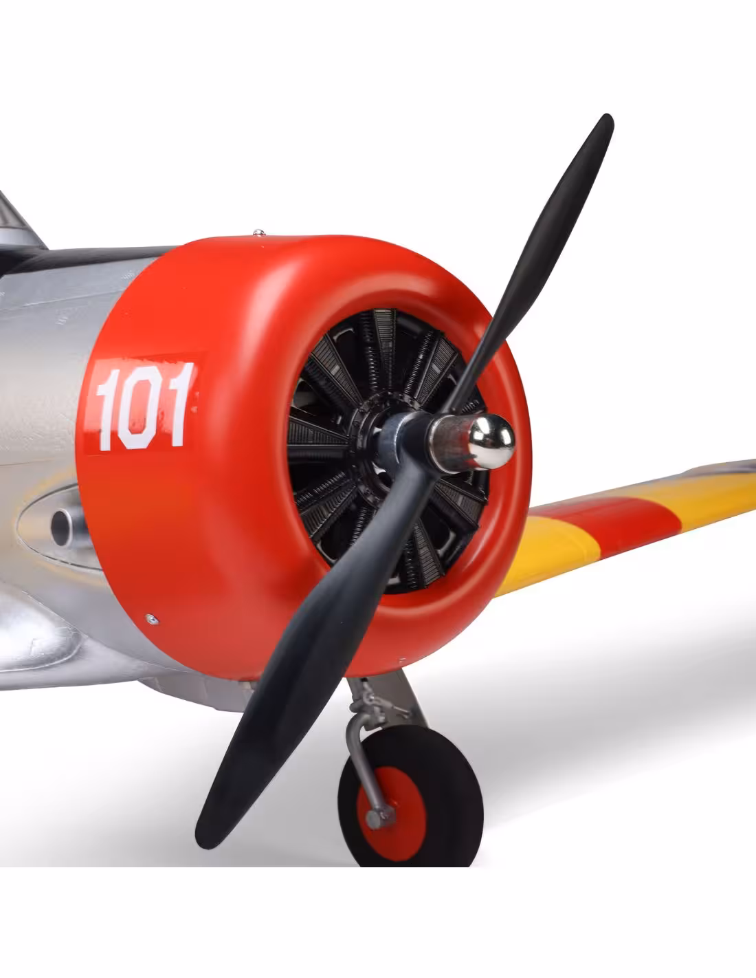 E-flite a modernisé et amélioré le SNJ-5/AT-6 1,5m pour en faire un modèle miniature du “Texan” le plus performant et le plus facile à piloter à ce jour! La cellule est peinte en usine dans sa finition emblématique basée sur le SNJ-5 «101», toujours utilisé par High Sky Wing, une unité de la Commemorative Air Force basée à Midland, au Texas. Il présente de nombreux détails, comme ses lignes de panneaux moulées, un moteur radial simulé, un cockpit détaillé avec une figurine de pilote et bien plus encore. De plus, ses volets fonctionnels et son train d'atterrissage rétractable enrichissent votre expérience de vol. Le système d'alimentation amélioré, compatible avec les moteurs 3S et 4S (2200-4000mAh), est équipé d'un ESC Spektrum Avian Smart Lite de 70A. La version de base BNF Basic est équipée d'un récepteur AR631+, qui fournit des données de télémétrie en temps réel, ainsi que des technologies AS3X+ améliorées et SAFE Select (en utilisation optionnelle). L'assemblage ne nécessite aucune colle, ce qui vous permet d'en profiter plus rapidement et généralement en moins de temps qu'il n'en faut pour charger une batterie. L'aile monobloc est facile à démonter et à installer, pour un transport et un rangement encore plus aisés grâce aux connexions servo mains libres. Ses caractéristiques, sa maniabilité et ses performances en font un excellent choix pour les pilotes de warbirds de niveau intermédiaire à avancé!