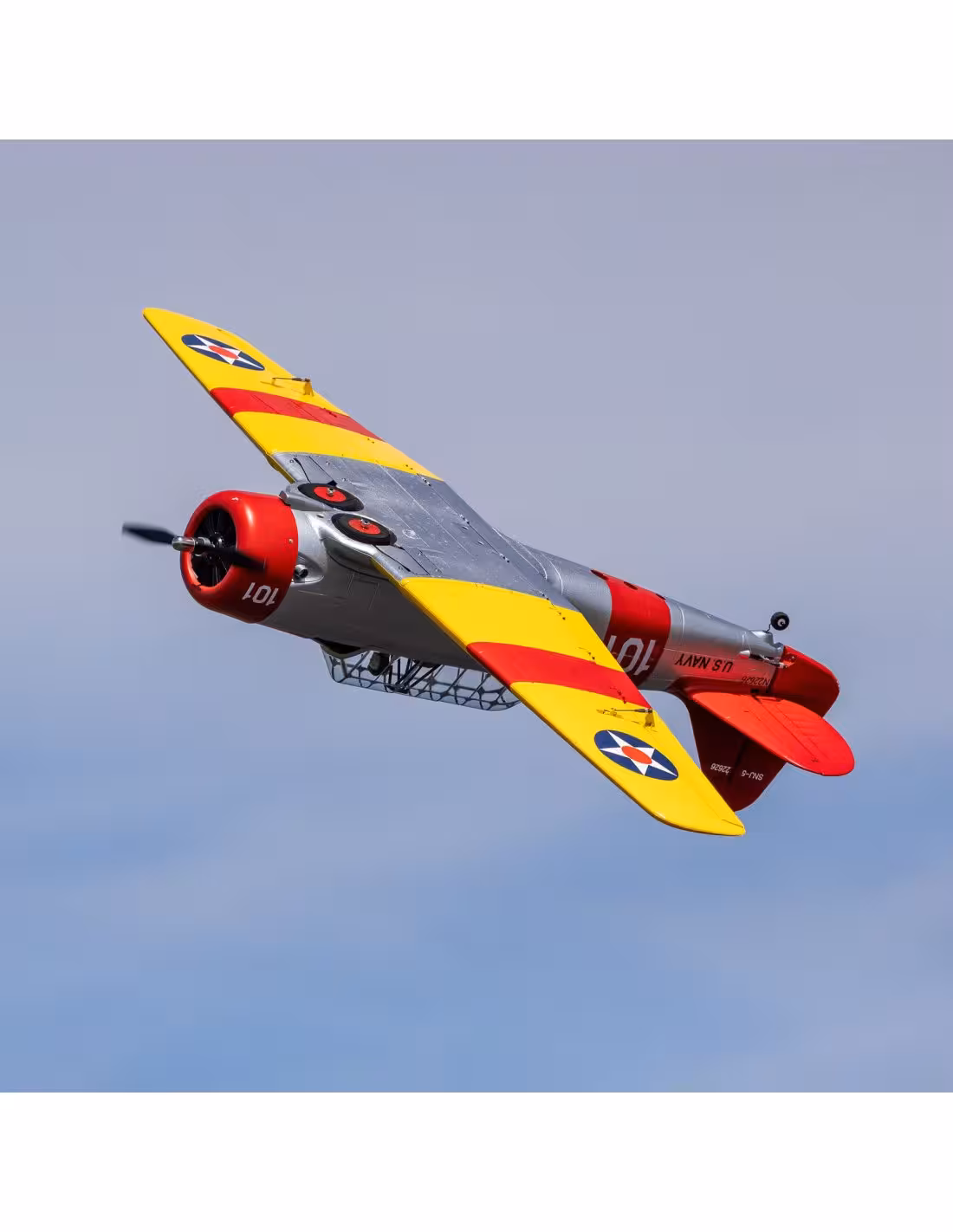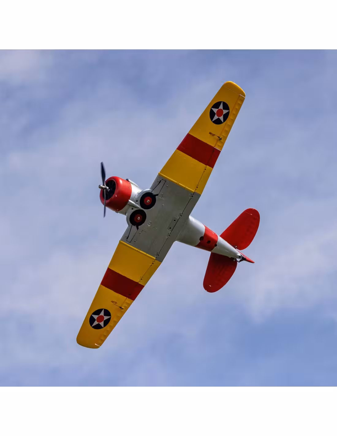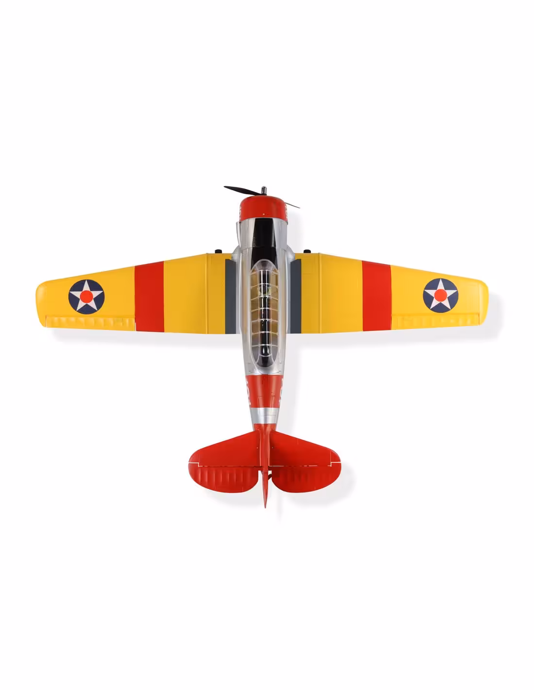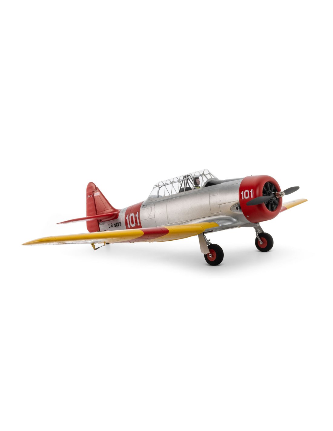 Avant que les élèves-pilotes de la Seconde Guerre mondiale ne deviennent d'excellents pilotes de chasse des forces alliées, ils devaient d'abord acquérir de l'expérience grâce à un avion d'entraînement avancé. Le robuste AT-6 Texan leur a permis de maîtriser les mauvaises habitudes des chasseurs, d'acquérir davantage de discipline et de respect pour leur appareil. Les pilotes de l'US Navy ont largement piloté cet avion sous la désignation SNJ, et aujourd'hui, des centaines d'AT-6 continuent de voler, servant bien au-delà de leur rôle d'avion d'entraînement. L'E-flite SNJ-5/AT-6 Texan 1,5m est un hommage rare à cet avion de guerre méconnu. Il est équipé d'un système d'alimentation amélioré compatible 3S et 4S, incluant un contrôleur Spektrum Avian 70A Smart Lite. La version de base BNF Basic comprend également un récepteur AR631+ télémétrique doté de la technologie AS3X+® améliorée, ainsi que la technologie SAFE® Select (en utilisation optionnelle) pour faciliter le pilotage et le plaisir de vol pour un grand nombre de pilotes!