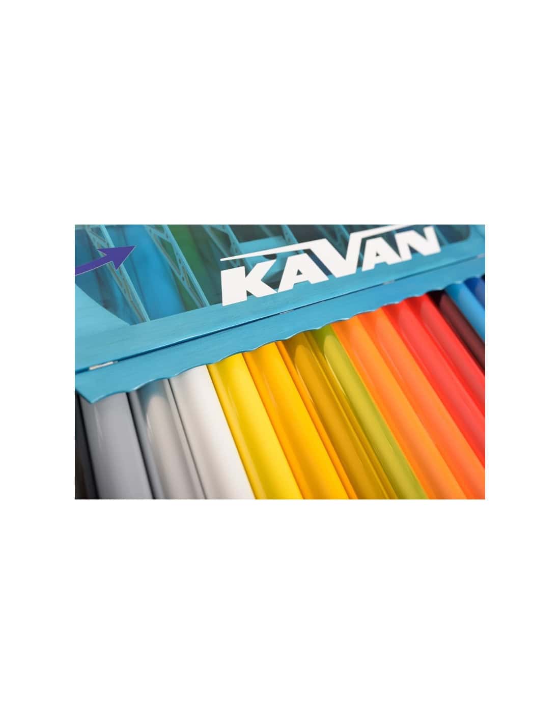 Le film de couverture thermocollant KAVAN est fabriqué à partir d'un polymère polyester très résistant mais très fin et léger, recouvert d'une couche d'adhésif thermosensible avec des pigments de haute qualité. Il est fourni en rouleaux d'une largeur de 64 cm et d'une longueur de 2 m, le dos avec l'adhésif est protégé par un film protecteur transparent.