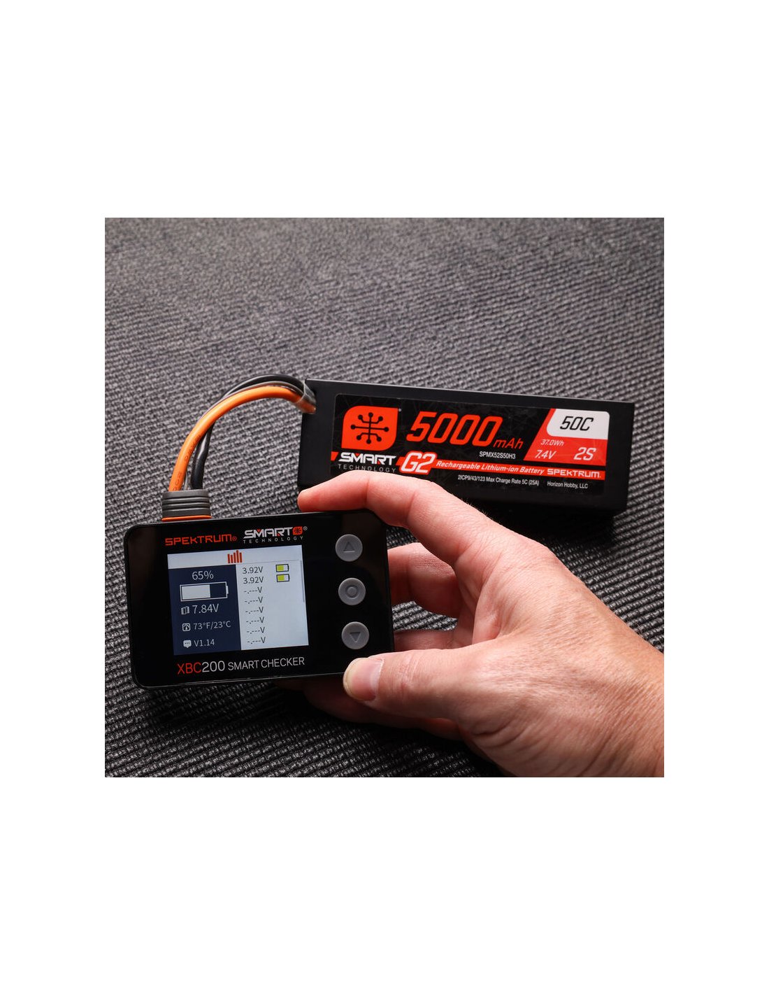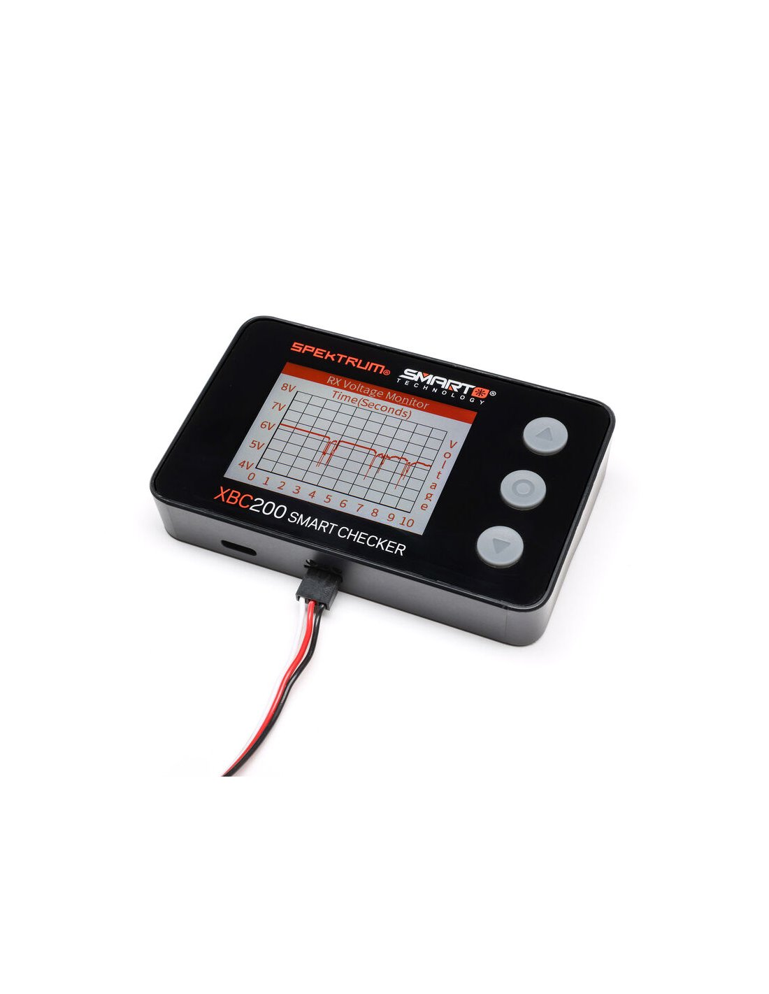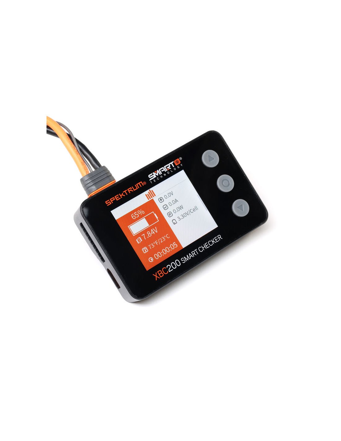 Le testeur de batterie SPMXBC200 Smart et de servos Spektrum est un outil indispensable pour tous amateurs de RC. Il offre encore plus de fonctionnalités que les générations précédentes. Plus qu'un simple testeur de batterie, il intègre un équilibreur de cellules, un système de vérification PWM, un contrôleur de tension pour récepteurs avec représentation graphique de la tension en fonction du temps, un testeur et un pilote de servos intégrés, des connexions pour IC2, IC3 et IC5, ainsi qu'une connectivité pour batterie Spektrum Smart.