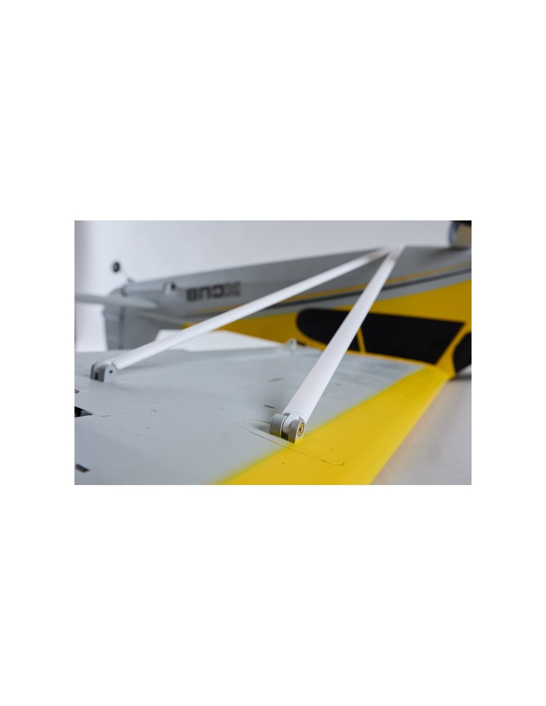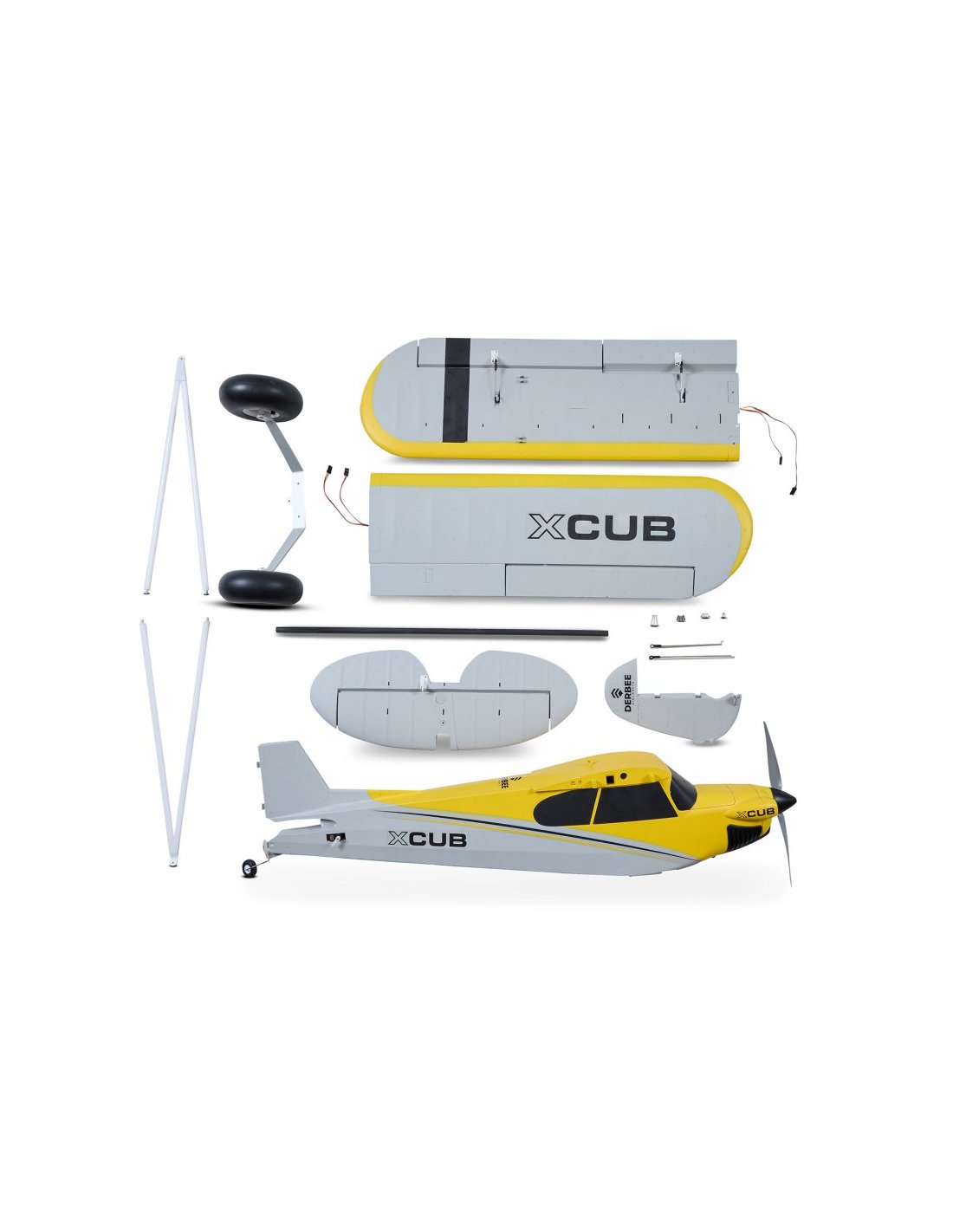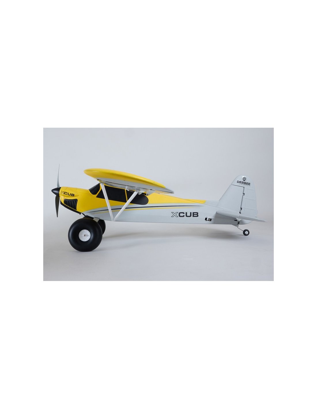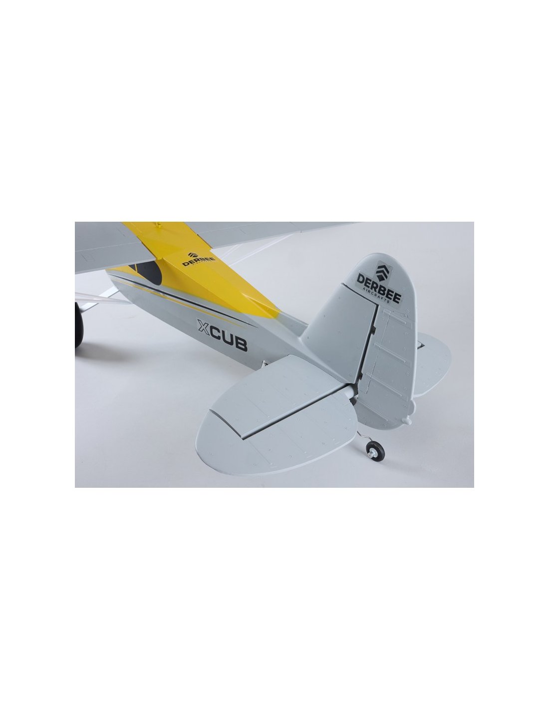 Le XCub de DERBEE est livré pratiquement prêt à voler et s'assemble en quelques gestes. Le moteur, le contrôleur et les 7 servos pour les volets d'atterrissage, les ailerons, les gouvernails et le crochet de remorquage sont déjà installés. Il vous suffit d'une batterie LiPo 3S ou 4S adaptée et d'un récepteur pour faire décoller le XCub en un clin d'œil.