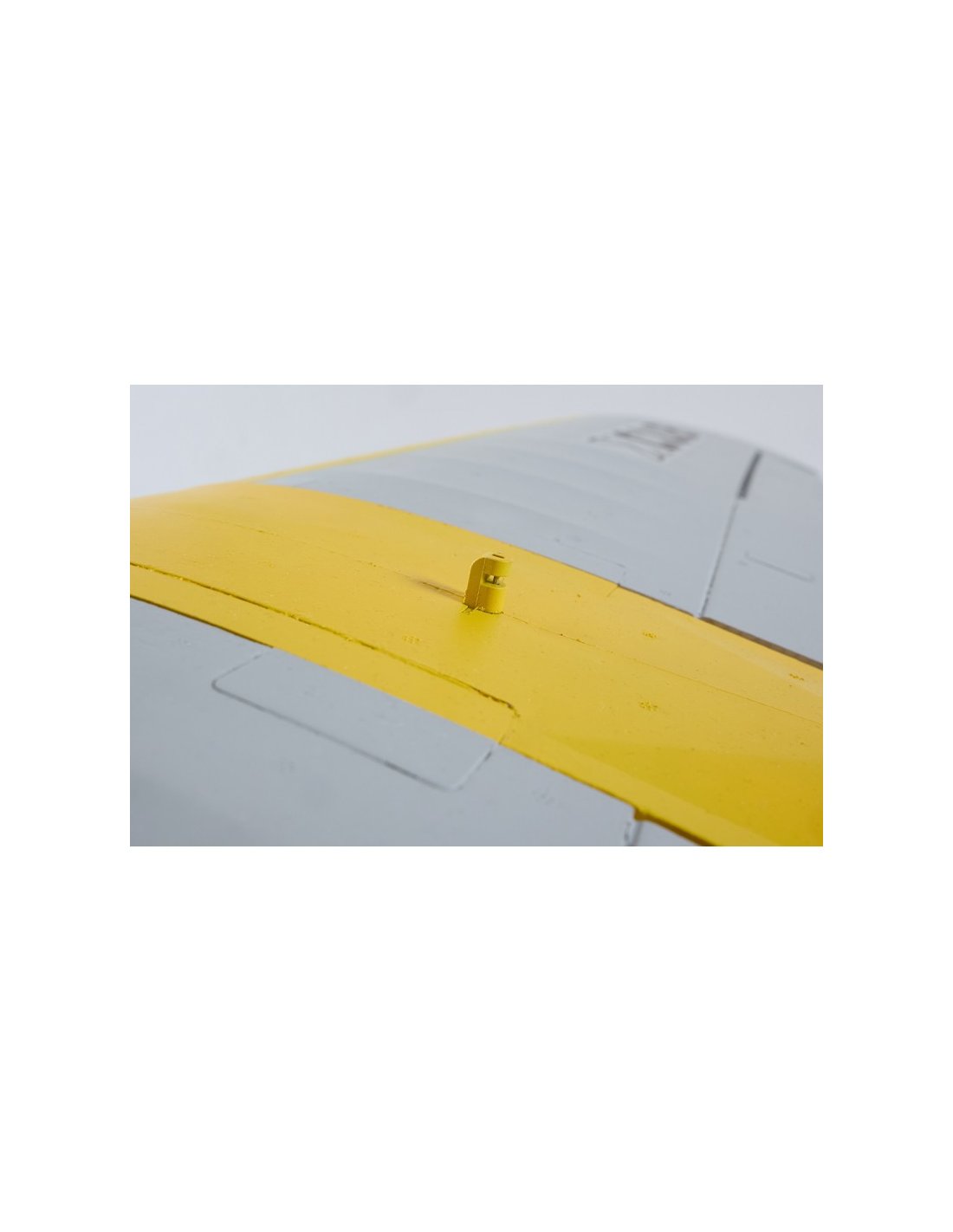 Le XCub de DERBEE est livré pratiquement prêt à voler et s'assemble en quelques gestes. Le moteur, le contrôleur et les 7 servos pour les volets d'atterrissage, les ailerons, les gouvernails et le crochet de remorquage sont déjà installés. Il vous suffit d'une batterie LiPo 3S ou 4S adaptée et d'un récepteur pour faire décoller le XCub en un clin d'œil. Le modèle dispose d'excellentes propriétés STOL et peut décoller et atterrir sur n'importe quel terrain grâce à ses grands pneus en caoutchouc. L'un des points forts est le crochet de remorquage déjà installé.