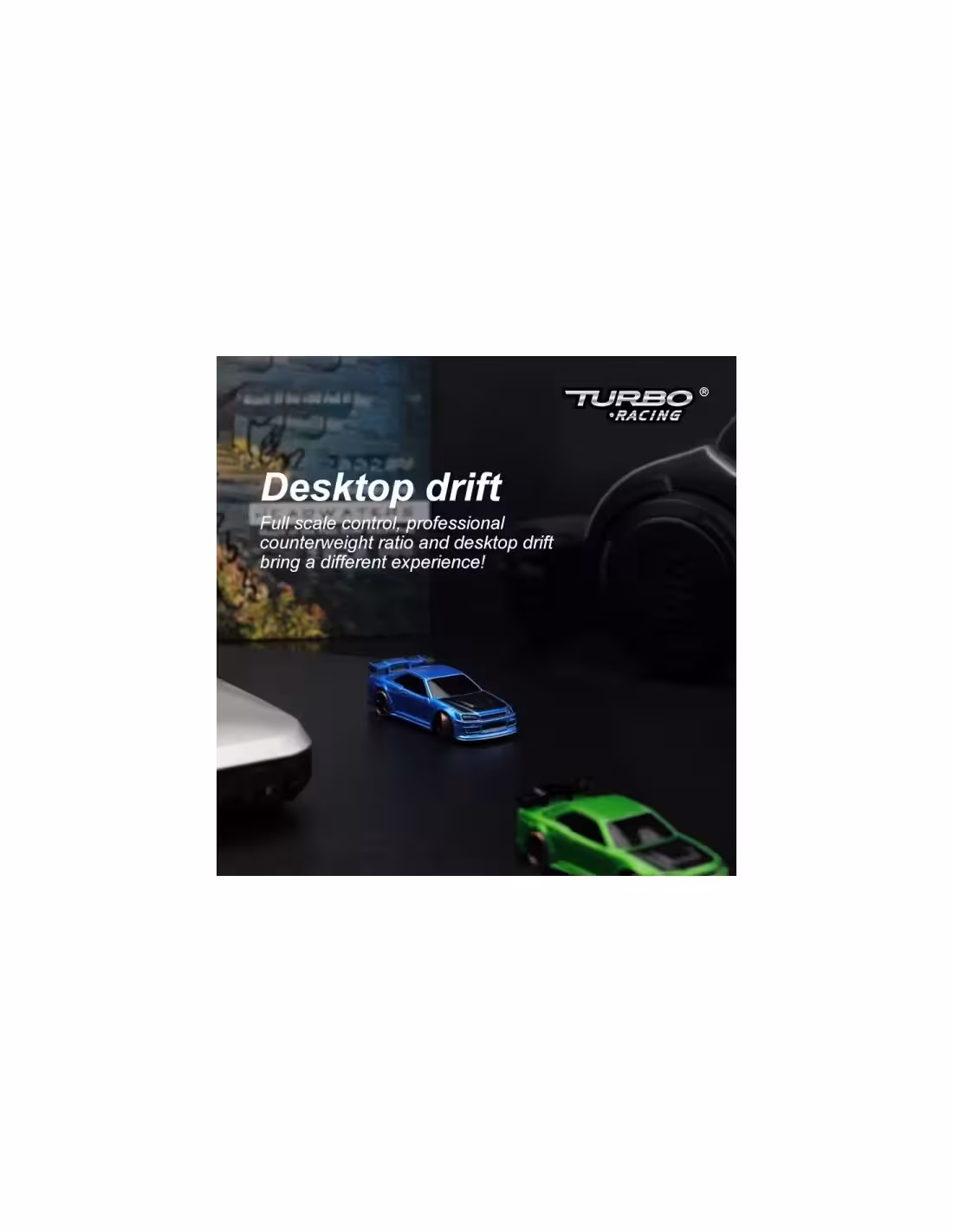 La Turbo Racing est une micro voiture RC au 1/76ème (elle tient sur un pouce de la main). Les commandes sont entièrement proportionnelles et similaires à des modèles de plus grandes échelles. La conduite est bluffante et accessible à tous (néophytes ou modélistes avertis). L'autonomie des voitures est de 40 minutes et la recharge se fait via une prise USB-C qui se trouve sous la voiture. Les Turbo Racing sont des voitures extrêmement fiables et il y a rarement de la casse. On peut rouler sur une table ou un plan de travail. Pour le tracé, il existe des pistes/tapis de différentes tailles mais on peut également envisager de construire et de décorer sa propre piste à la manière d'un train miniature (maquette de bâtiments, végétation, flocage...).