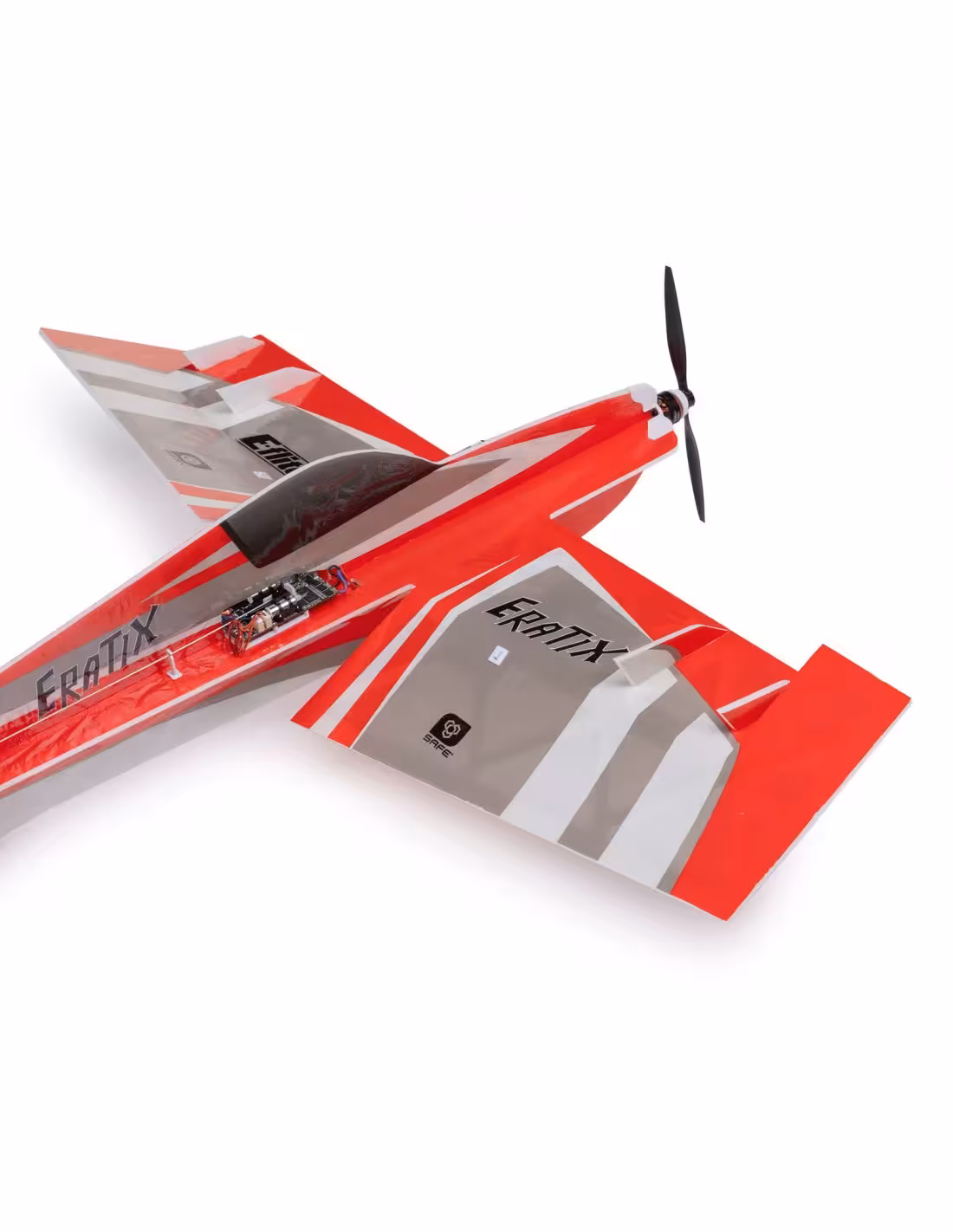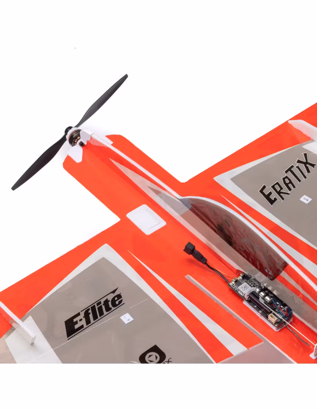 L'E-flite® Eratix 3D FF (Flat Foamy) 450 mm offre des performances acrobatiques agressives, la capacité du vol sportif et lent des modèles flat foamy, sans les tracas liés à l'achat et à son assemblage! Il est livré entièrement monté en usine et prêt à être appairé à votre émetteur Spektrum compatible, vous permettant de décoller en un rien de temps. Inspiré des modèles flat foamy UMX™ Extra 300 et Yak 54, sa cellule découpée au laser et renforcée en composite le rend suffisamment léger pour effectuer des manœuvres 3D extrêmes en intérieur, dans des espaces comme un salon ou une salle de conférence et presque partout en extérieur. Le moteur outrunner brushless, installé en usine et équipé d'une protection d'hélice et, est compatible avec les batteries 2S 280-350 mAh les plus courantes. Il est également équipé des technologies AS3X® et SAFE® Select, soigneusement optimisées et fournit la tension de la batterie en temps réel, ainsi que d'autres informations télémétriques aux émetteurs compatibles. Cela en fait un ajout polyvalent au “hangar” de pilotes intermédiaires à expérimentés !