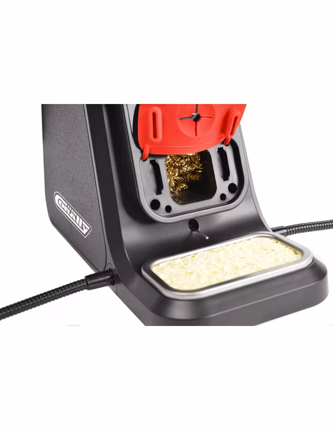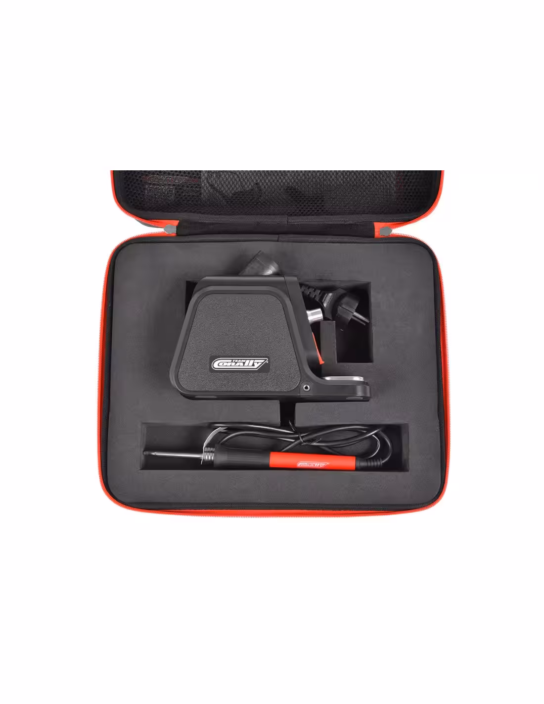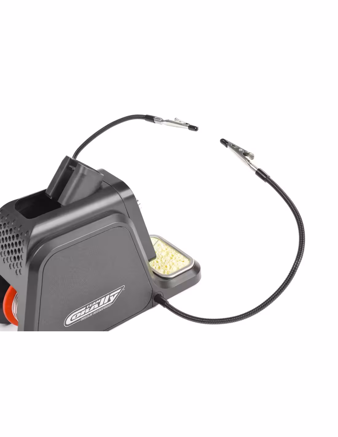 Avec la station de soudure Pro 80 w de chez Team Corally vous réussirez parfaite des soudures brillantes et fiable . Les 500 degrés permettes de chauffer les gros connecteur rapidement sans fondre la partie plastique . cette station possède un dévidoir intégré pratique , 2 pinces pour tenir les parties à souder et un grattoir et une éponge pour le nettoyage de la panne . un ensemble complet facile à ranger et efficace .