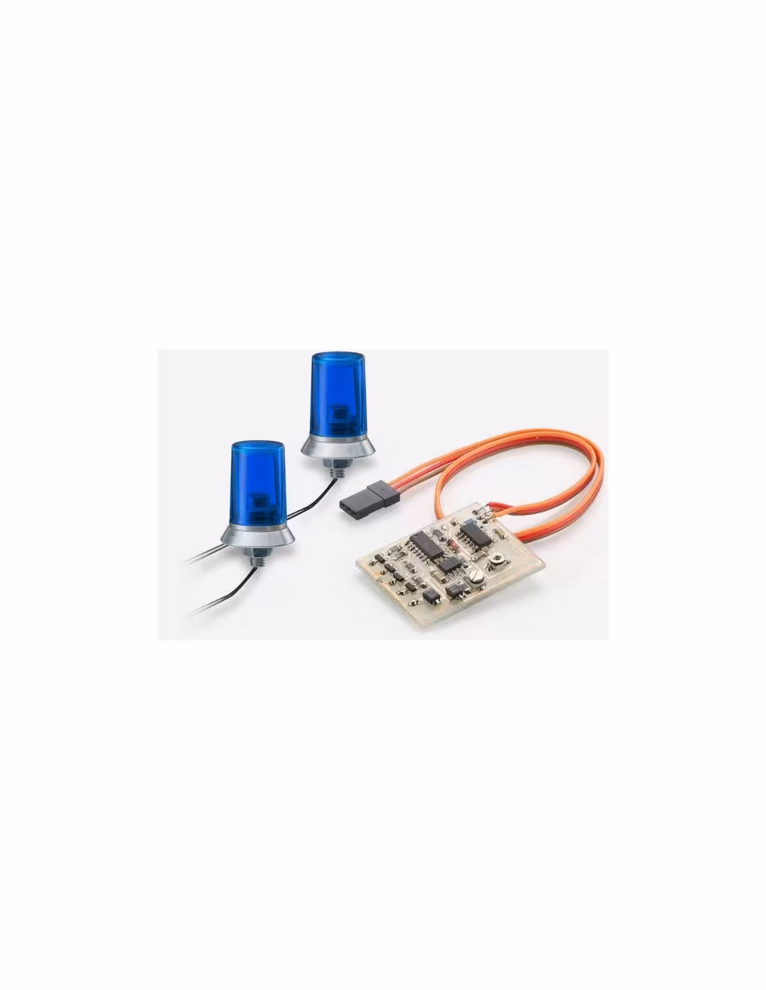 Les feux orientables peuvent être montés avec un angle d'inclinaison jusqu'à 5° grâce à un socle. Ceci garantit une utilisation universelle sur la quasi-totalité des cabines d'engins de chantier, de tracteurs poids lourds, de superstructures, de remorques, de semi-remorques, etc. Quatre ampoules clignotantes en série créent l'effet de gyrophare. Ces gyrophares doubles sont contrôlés par des composants électroniques de clignotement CMS et un canal de commutation libre sur le récepteur.