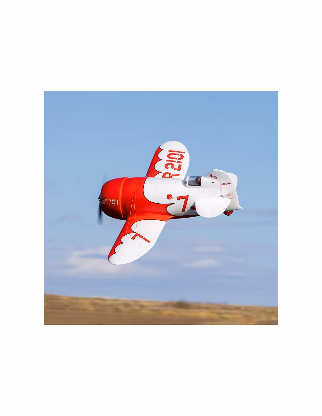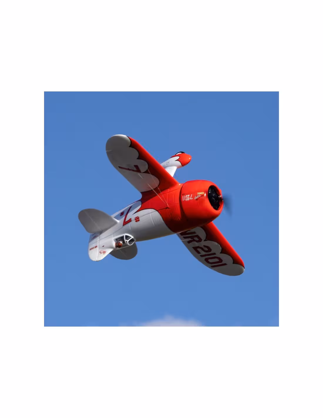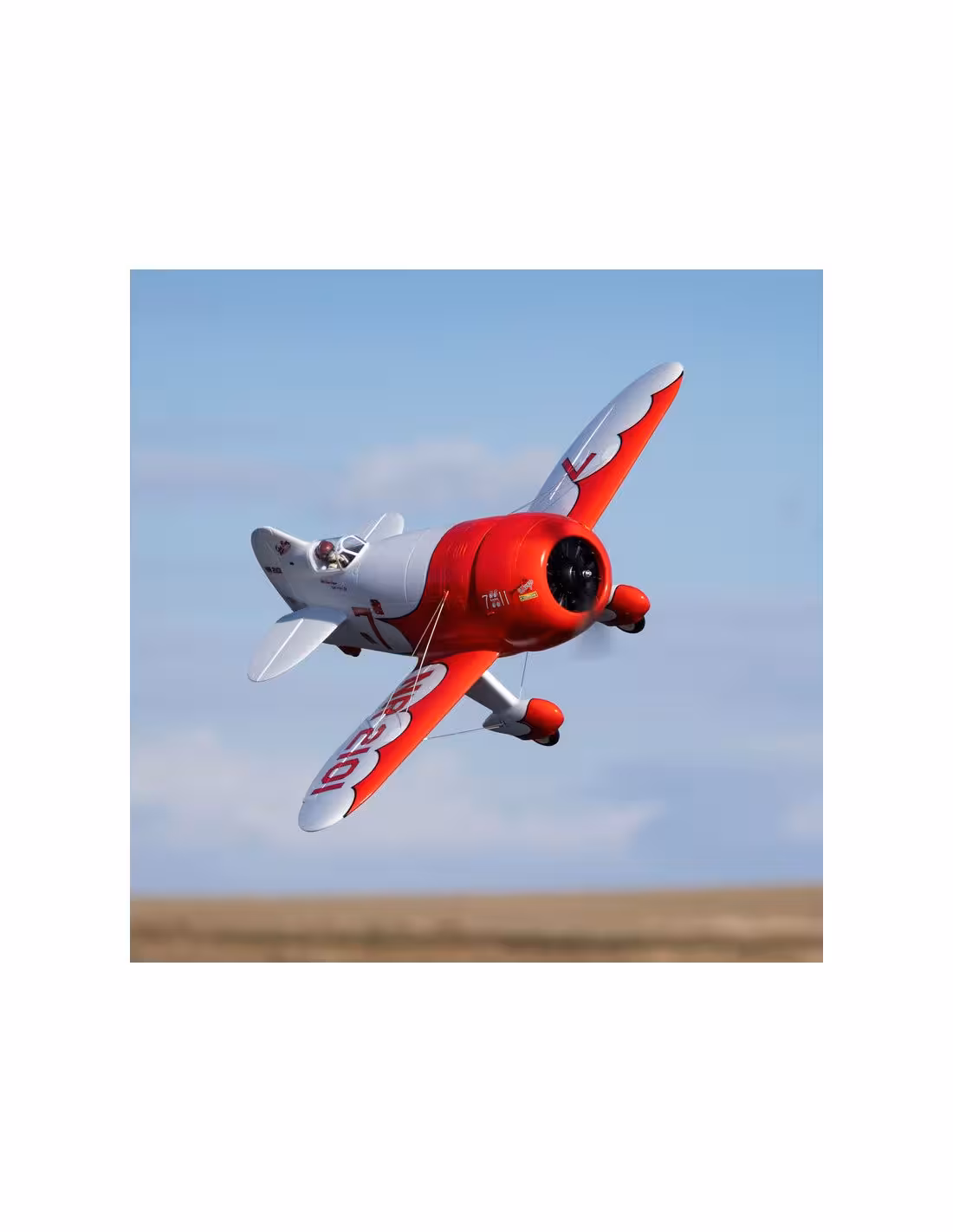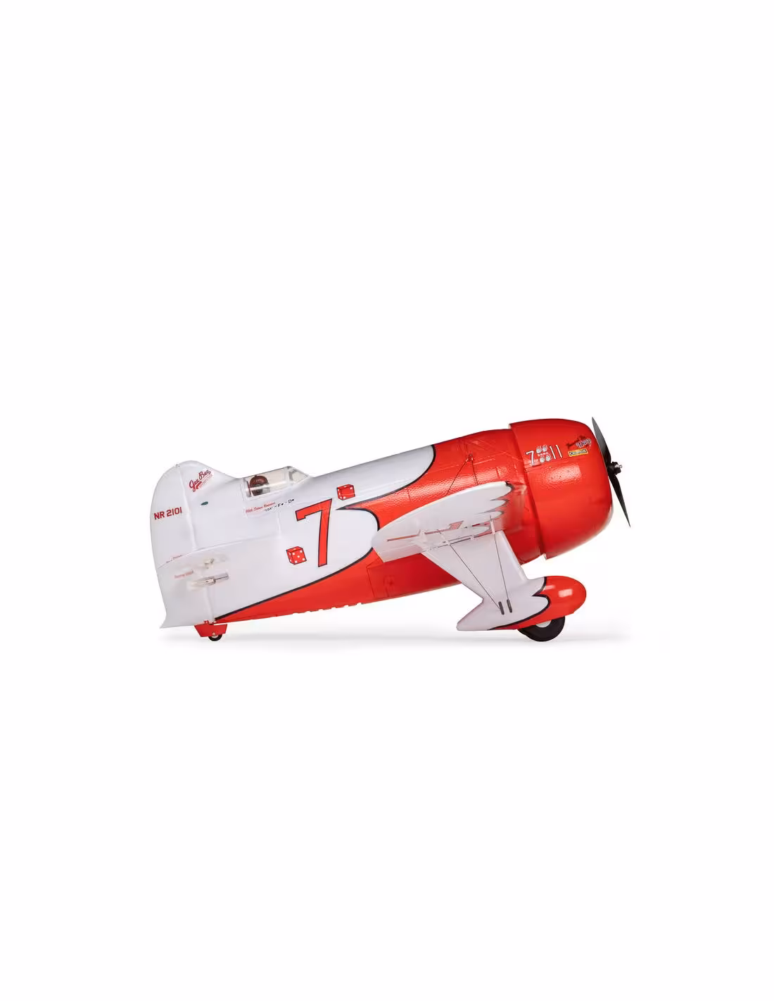 Le GeeBee R2 de chez E-flite d'une envergure de 1M dégage une authenticité et une multitude de détails réalistes comme: des lignes de panneaux moulées, un moteur radial simulé, haubans et figurine de pilote. Il est doté d'un train d'atterrissage amorti et de roues spécialement conçues pour faciliter l'atterrissage, ainsi que d'une roulette de queue orientable. L'aile monobloc est équipée de connexions mains libres. Disponible en 2 versions BNF avec récepteur Spektrum ou PNP sans récepteur .