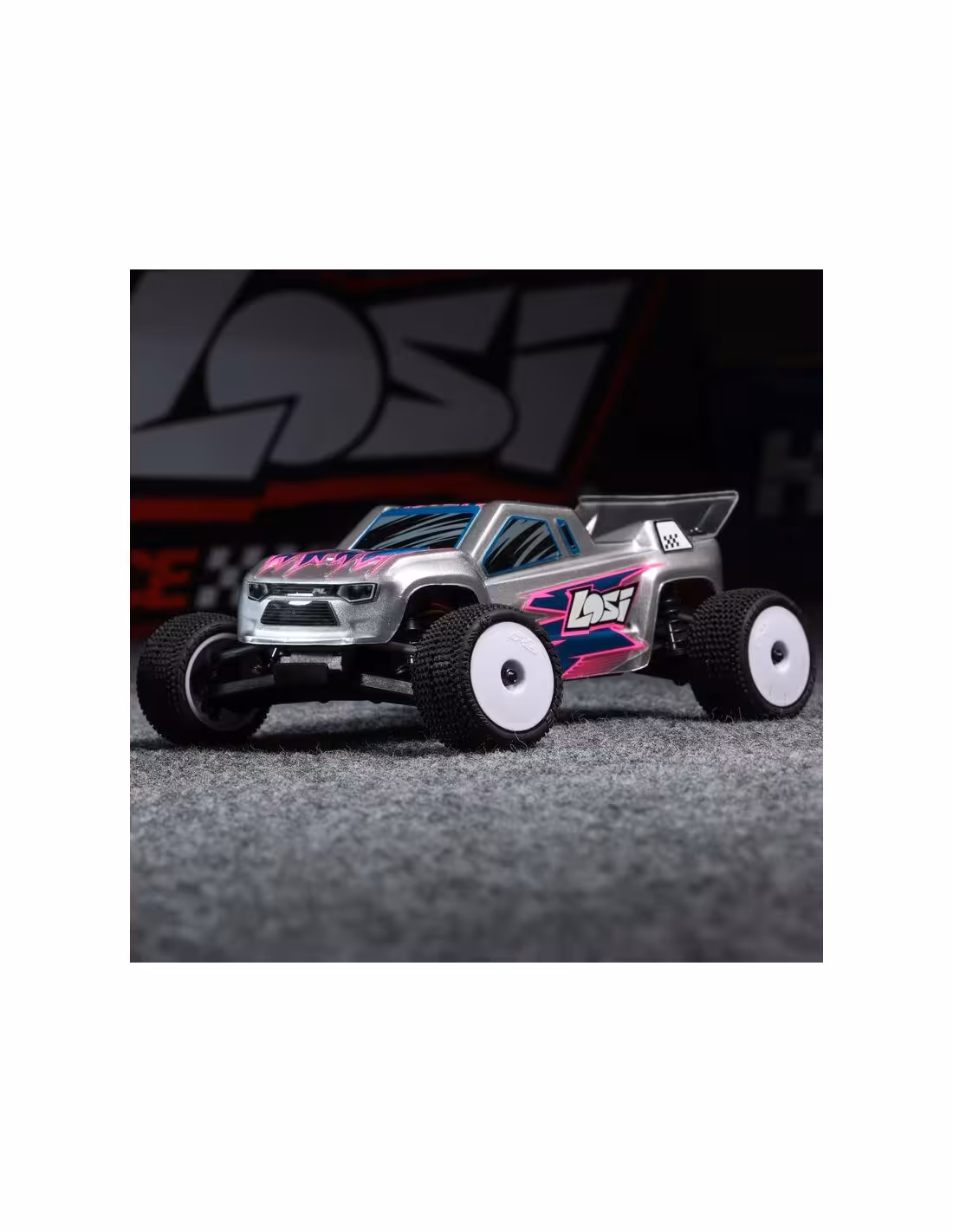 A l'échelle 1/28 et avec son design inspiré de la voiture championne du monde TLR, le stadium truck Micro-T prouve que pour de grandes performances, la taille importe peu– et à un tarif avantageux. Le Micro-T permet de profiter facilement du plaisir de la course avec vos amis et votre famille presque n'importe où!