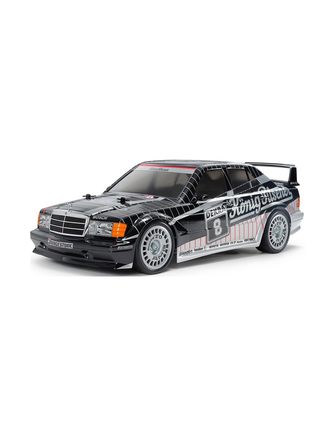 La Mercedes benz 190 fait partie du championnat allemand des voitures de tourisme nommé DTM . Elle est équipé du châssis Tamiya TT-02 avec motorisation intégrale . Ce modèle est une reproduction maquette à échelle 1/10 ème à assembler . la voiture mesure 445 mm . Une voiture parfaite pour débuter en compétition dans votre club de voiture RC .