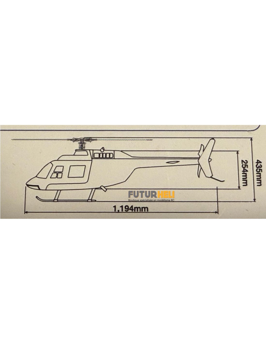 Fuselage en Fibre de verre Peint pour modèle d'helico de type 50 soit un rotor avec des pales de 600 mm . Marque Hirobo .Vendu sans la mécanique .