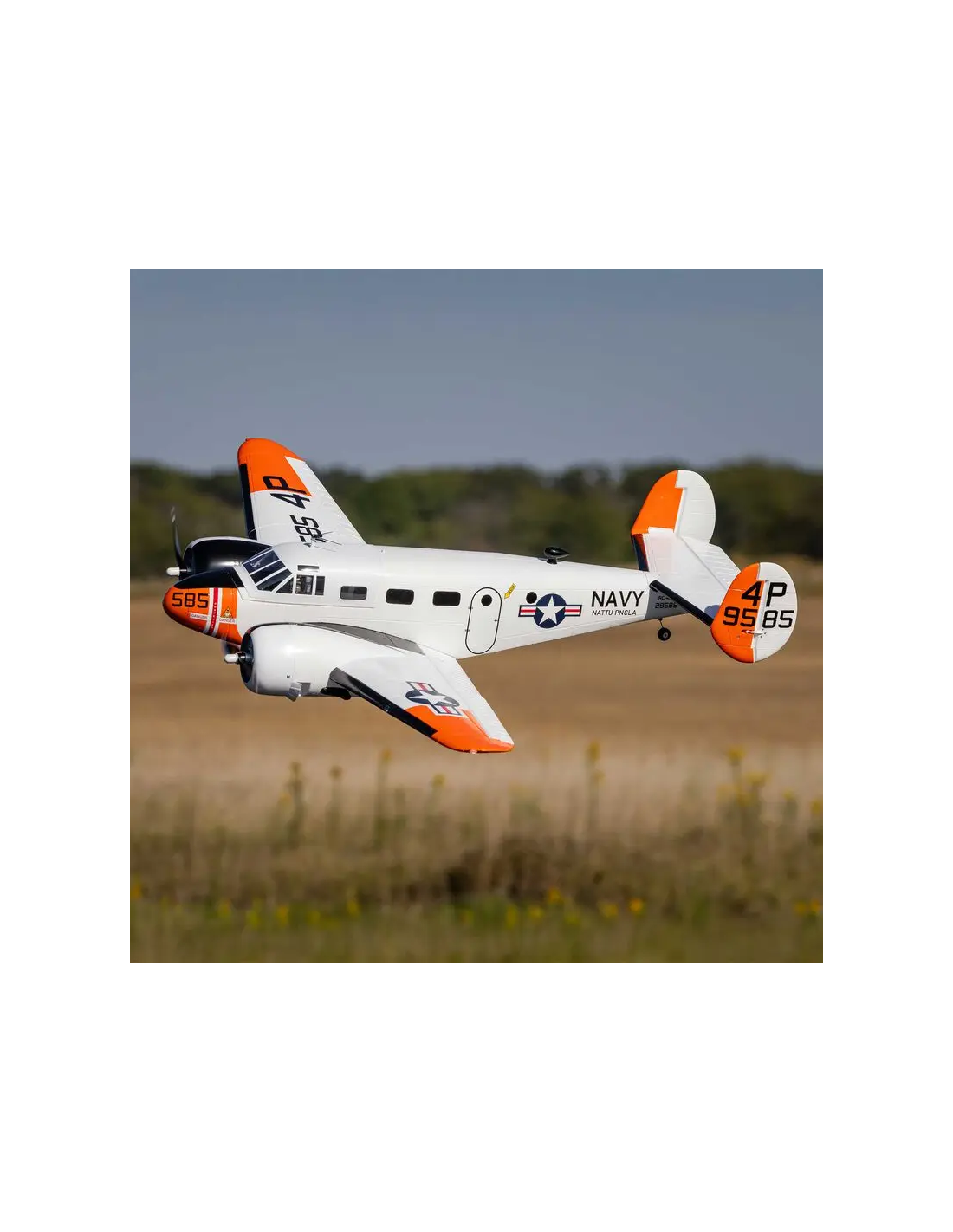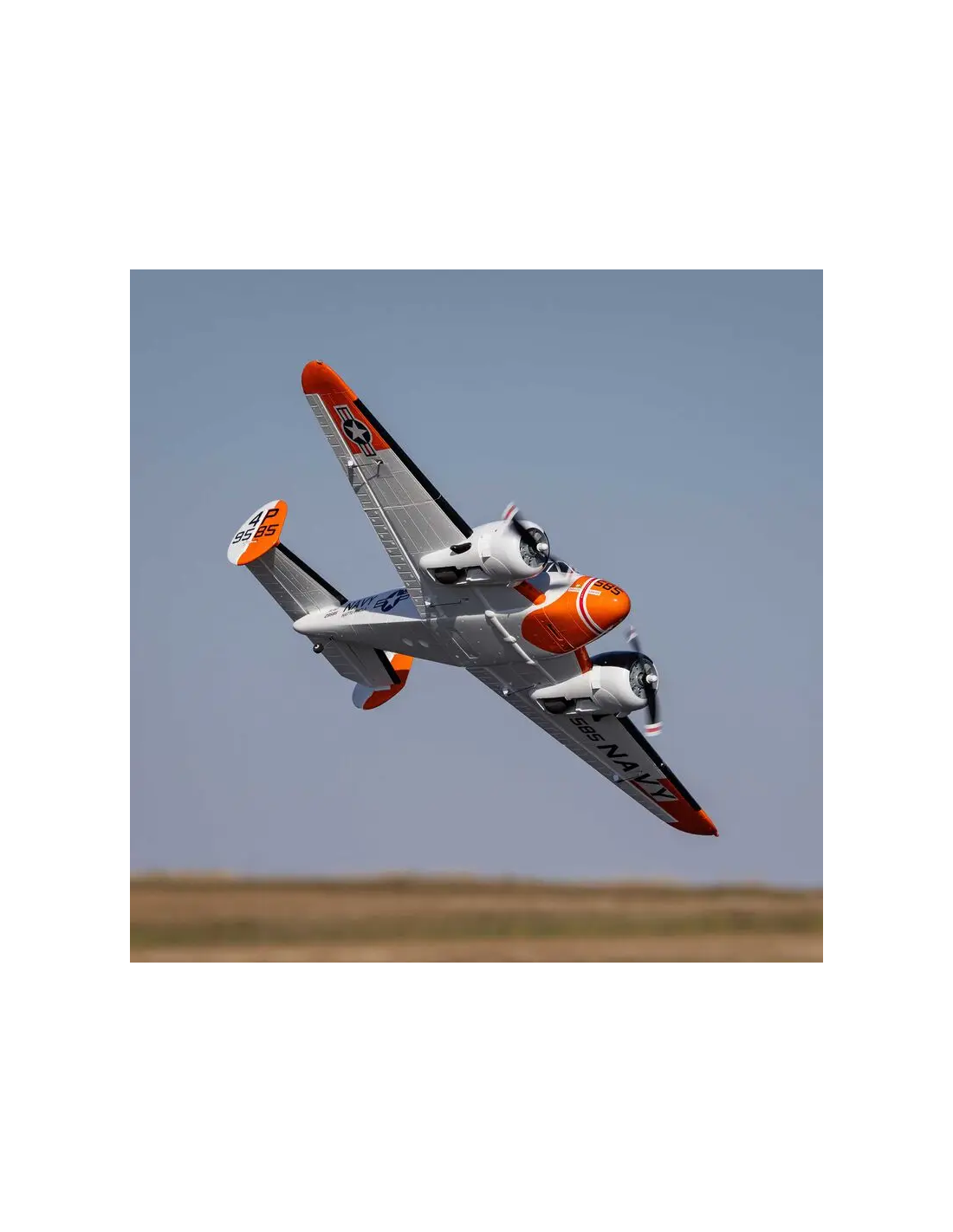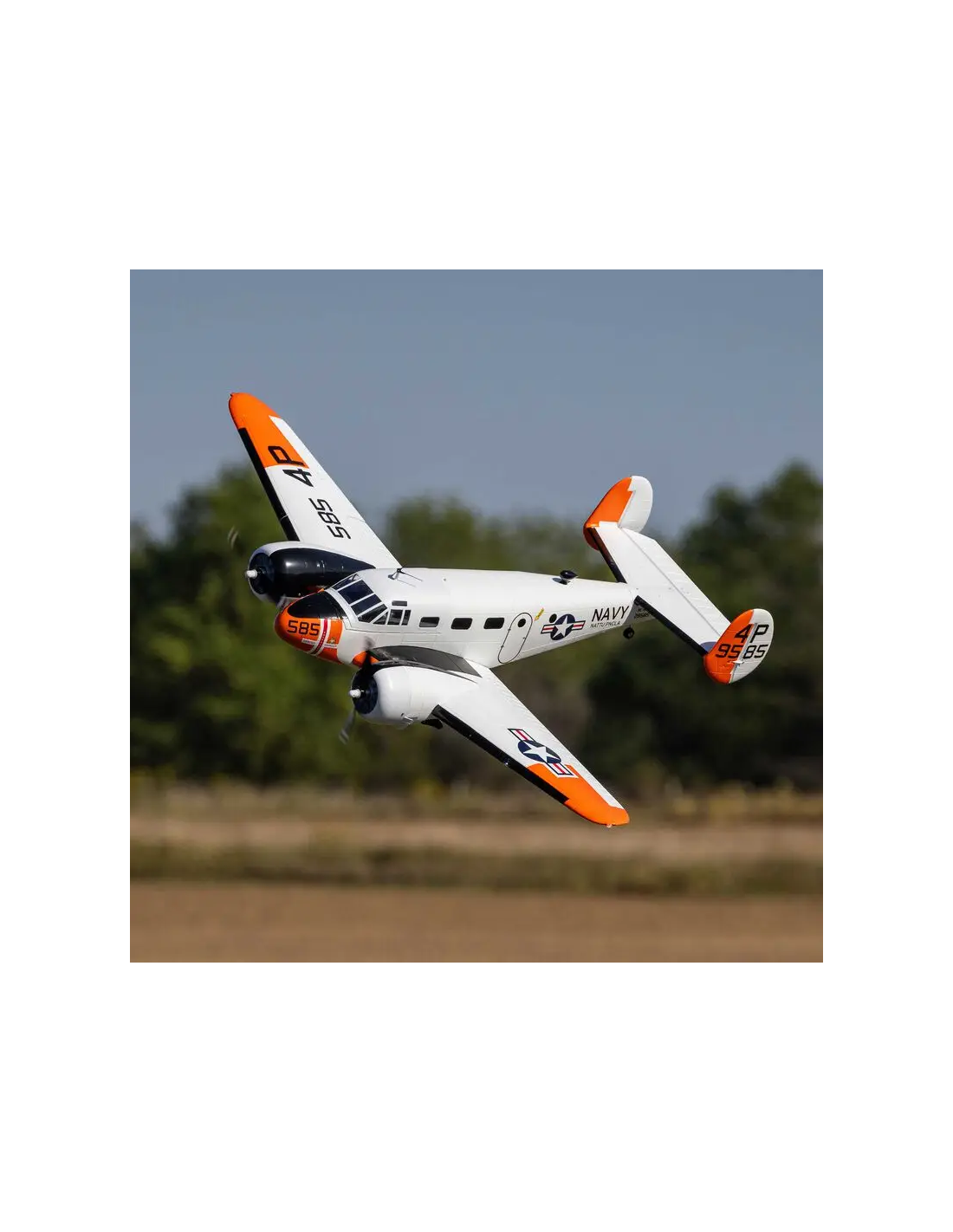 Beechcraft aux couleur Navy proposé dans sa nouvelle version en envergure 1,5m par E-flite . Un modèle bi-moteur vraiment unique livré en 2 version : PNP ( sans récepteur ) ou BNF avec récepteur Spektrum AS3X et Safe .Le modèle le plus pratique, performant et facile à piloter de l'un des avions les plus emblématiques de l'aviation civile et militaire! Son système de propulsion à deux moteurs brushless, spécialement optimisé, offre des performances supérieures pour un avion de cette taille avec des batteries 3S de 3200 à 5000 mAh. Nouveauté 2026 .