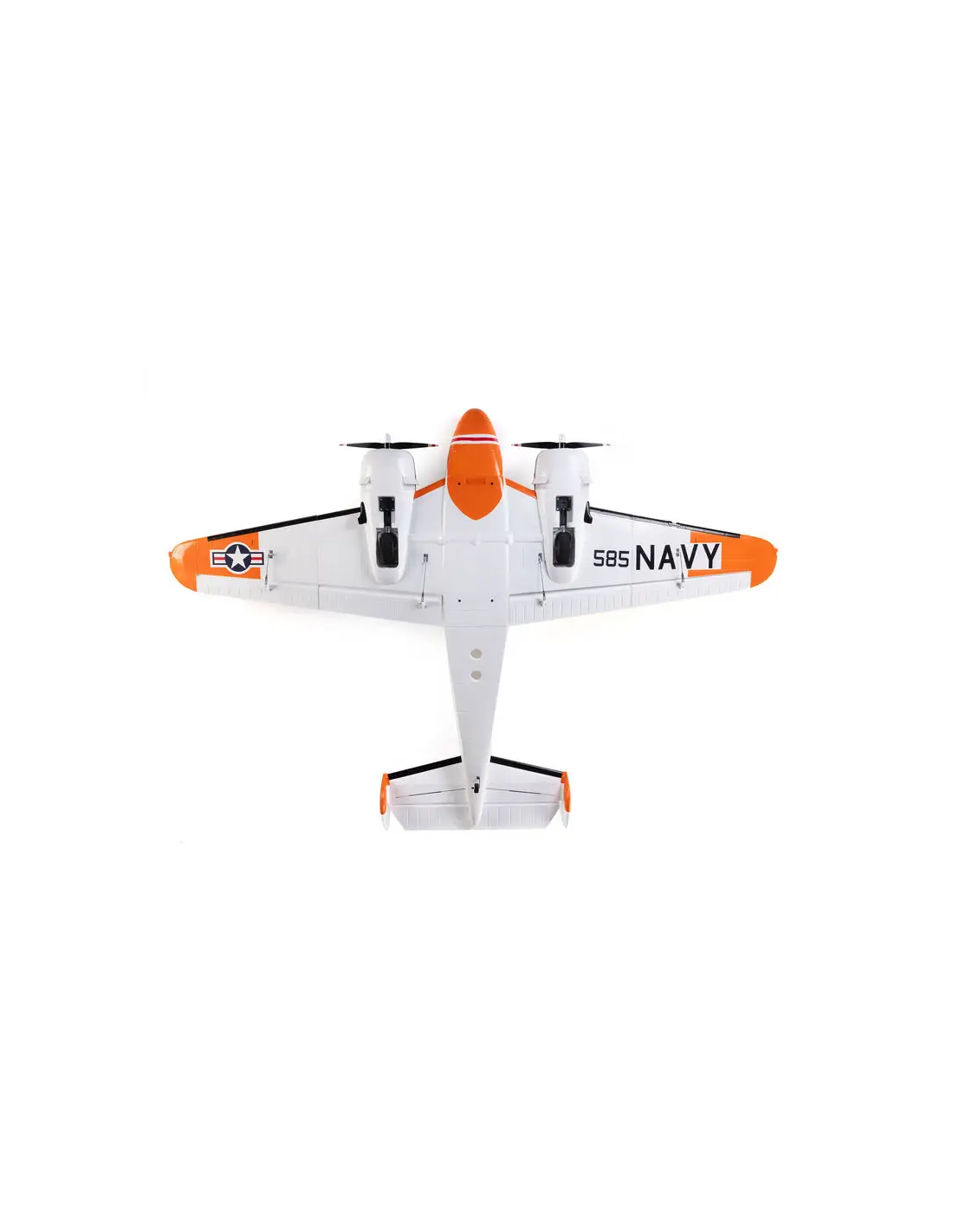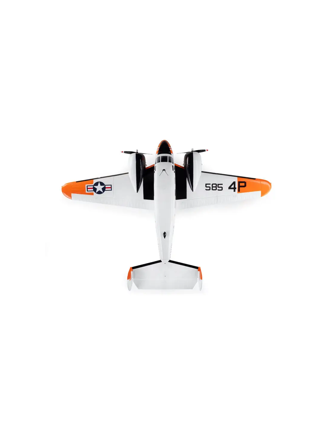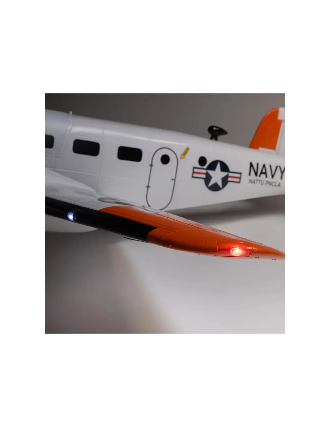 Beechcraft aux couleur Navy proposé dans sa nouvelle version en envergure 1,5m par E-flite . Un modèle bi-moteur vraiment unique livré en 2 version : PNP ( sans récepteur ) ou BNF avec récepteur Spektrum AS3X et Safe .Le modèle le plus pratique, performant et facile à piloter de l'un des avions les plus emblématiques de l'aviation civile et militaire! Son système de propulsion à deux moteurs brushless, spécialement optimisé, offre des performances supérieures pour un avion de cette taille avec des batteries 3S de 3200 à 5000 mAh. Nouveauté 2026 .
