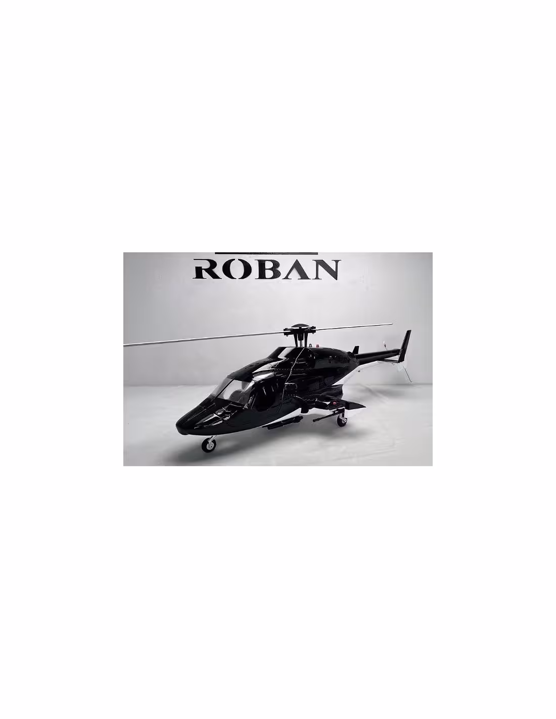 Roban Modèle pour présente un helico complet prêt à voler . Ce modèle est le Airwolf avec une finition maquette avec de superbes détails . Il est de belle taille avec une rotor de diamètre 840mm . Il est destiné au personnes qui débutent en helico et aux personnes expérimentées un helico parfait pour votre évolution au pilotage . Il possède un système GPS pour une sécurité totale pour débuter puis viendra la mode angle qui limitera votre évolution et enfin le mode traditionnel sans assistance . Nous l'avons testé et validé .
