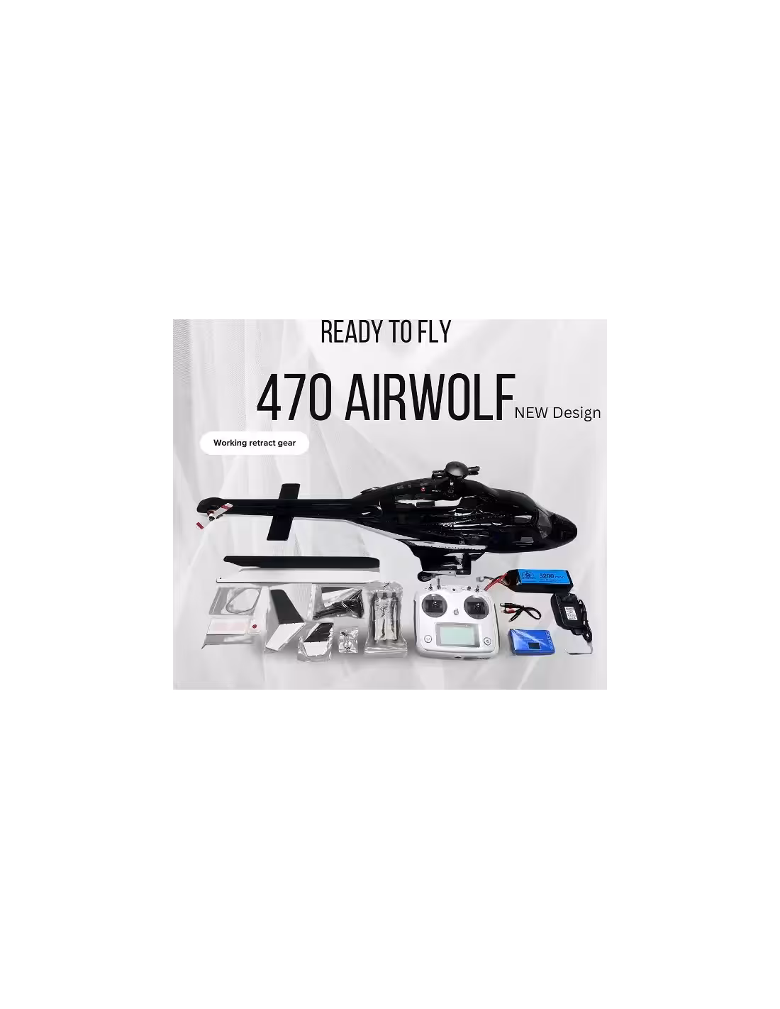 Le Roban Airwolf 470 est un hélicoptère radiocommandé de haute qualité, à l'échelle, qui donnera vie à votre passion du vol. Conçu avec une mécanique de précision et pensé pour les passionnés, cet hélicoptère reproduit fidèlement l'allure et les sensations de l'airwolf .