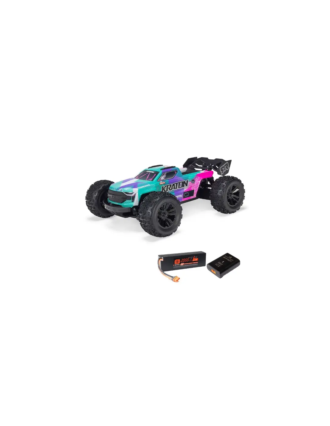 Arrma nous propose son Mini-Kraton le concurrent direct de la série Mini de chez Traxxas à l'chelle 1/16 ème . Un système innovant dans ce modèle c'est la possibilité de brider à 45 KM et de doubler l'autonomie ou de rouler pleine puissance jusqu'à 80 KM/H ceci tout simplement à une clé " Power key "  que l'on introduit dans le véhicule ( fourni dans la boite ) . Il bénéficie des dernières innovations comme la carrosserie sans clips , engrenage metal ,transmission 4WD et émetteur en 2,4 ghz équipé du DSC à 4 mode qui contrôle la  trajectoire il est possible de le désactiver depuis la radio pour les pilotes les plus aguerris .