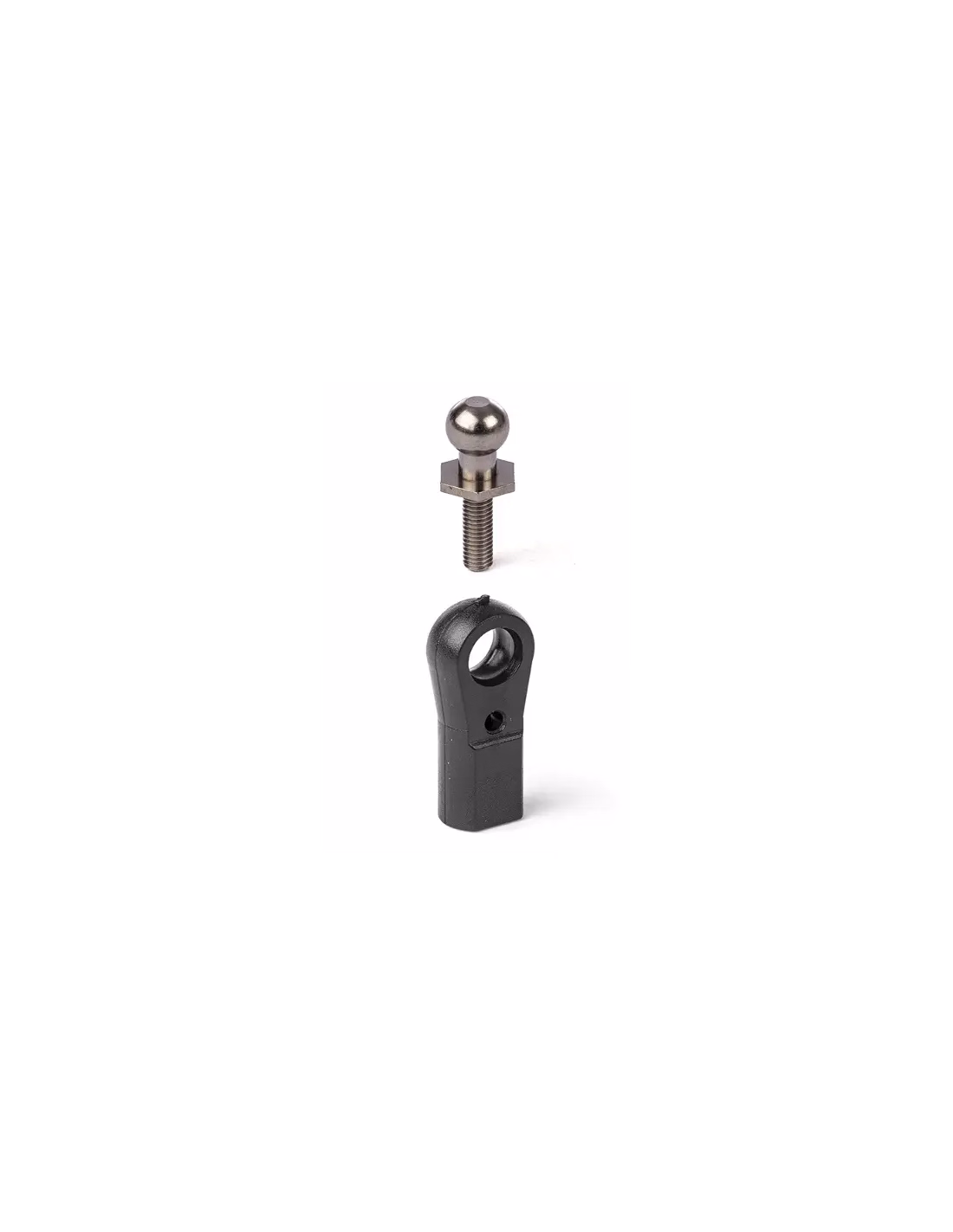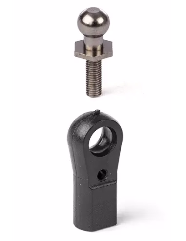 Rotules en nylon pour gros avions, gros bateaux à moteur thermique et véhicules tout-terrain thermiques. Il est quasiment impossible de déloger la rotule à la main, tout en assurant une rotation fluide dans son logement en nylon. Rotule nickelée, diamètre extérieur : 6 mm (0,24 po). Visserie de fixation M3.