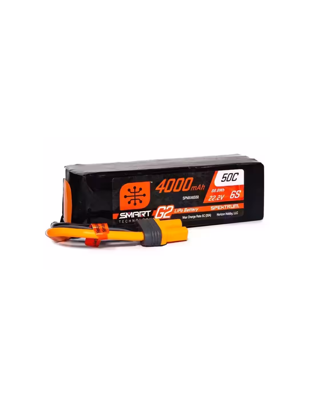 Batterie Smart G2 d'une capacité de 4000 Mah en 6 éléments en 50C avec prise IC5 . Il n'y a pas de prises d'équilibrage sur la série Smart . Votre chargeur Smart reconnaitra et se paramètrera automatiquement lors de la connexion . Cela évite les erreurs et les explosions de batterie .