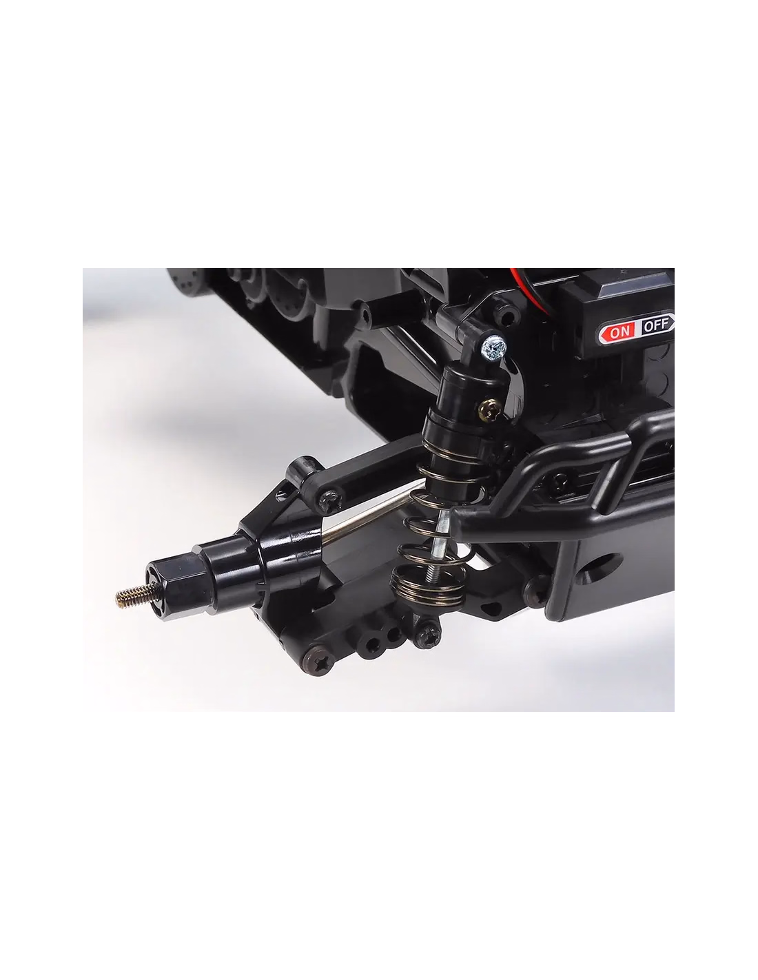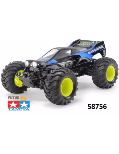 Nouveauté 2026 le Tamiya Quirkhopper 4WD sur châssis GF-02 . Un ensemble facile à assembler sur une carrosserie originale. le châssis GF-02 à quatre roues motrices et transmission par engrenages est doté d'un moteur en position basse et centrale, intégré à un cadre monocoque léger et robuste. La puissance est transmise aux essieux avant et arrière par engrenages. L'empattement long et la voie large garantissent une excellente stabilité en tout-terrain.