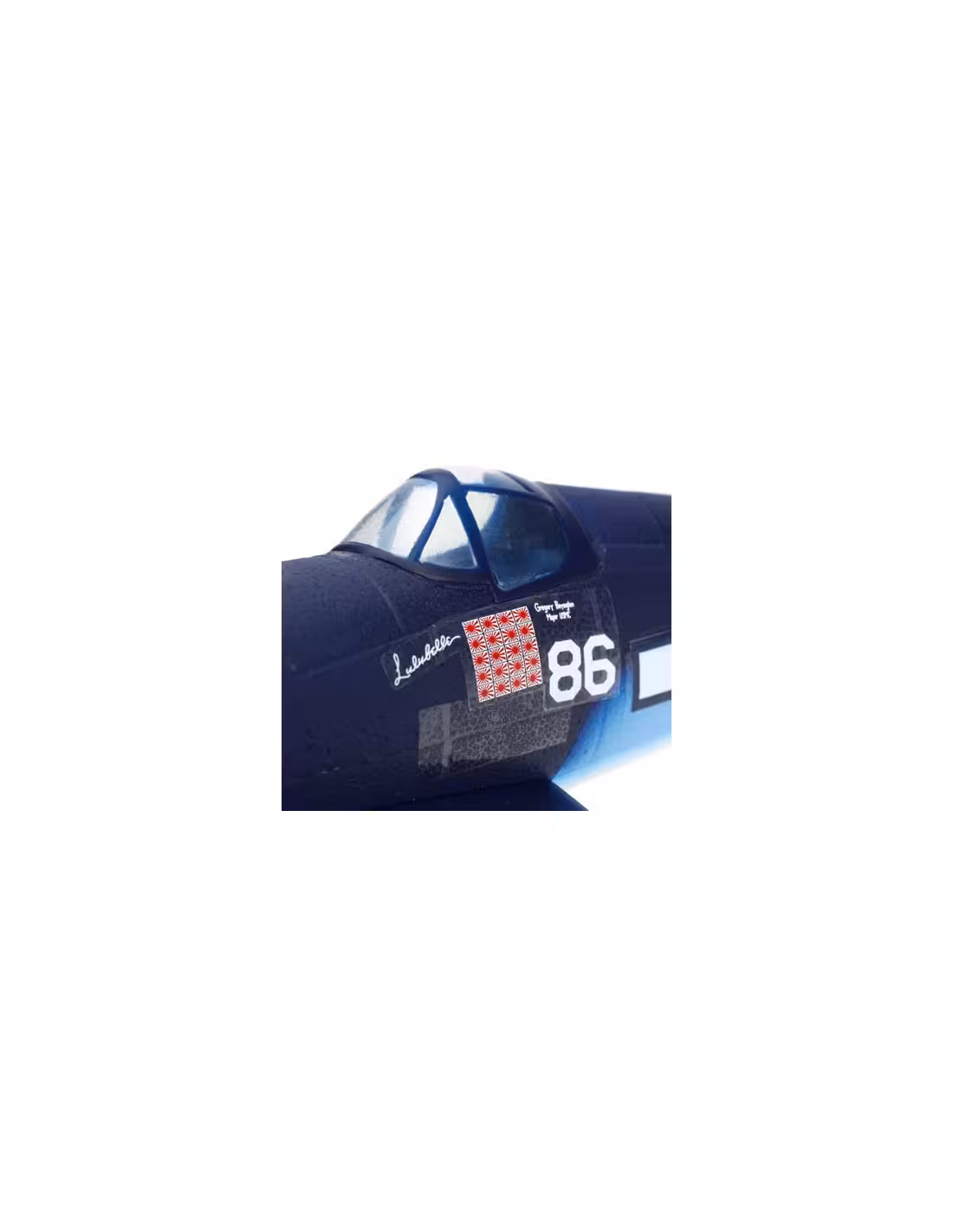 Avec sa décoration classique en trois tons de l'US Navy , et pour un meilleur rendu le Micro Corsair est équipé d'une hélice tri-pale, des lignes de structures moulées et d'un verrière transparente.