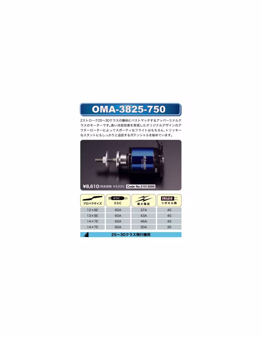 ■Hélices conseillées : 12x8 à 14x7