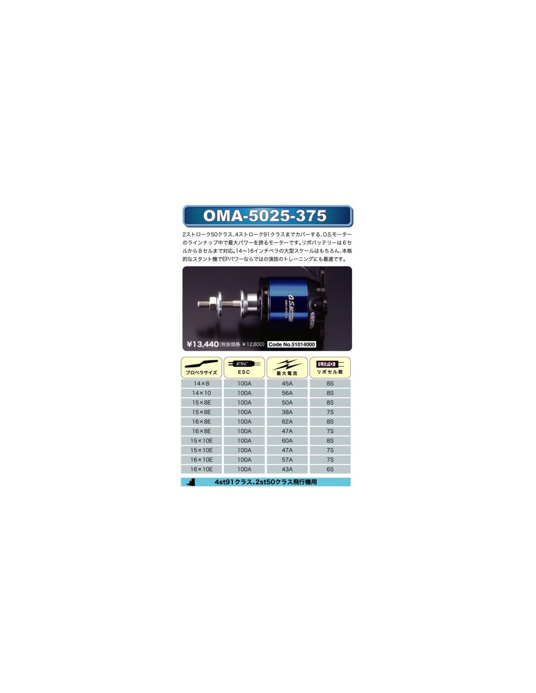 ■Hélices conseillées : 14x8 à 16x12