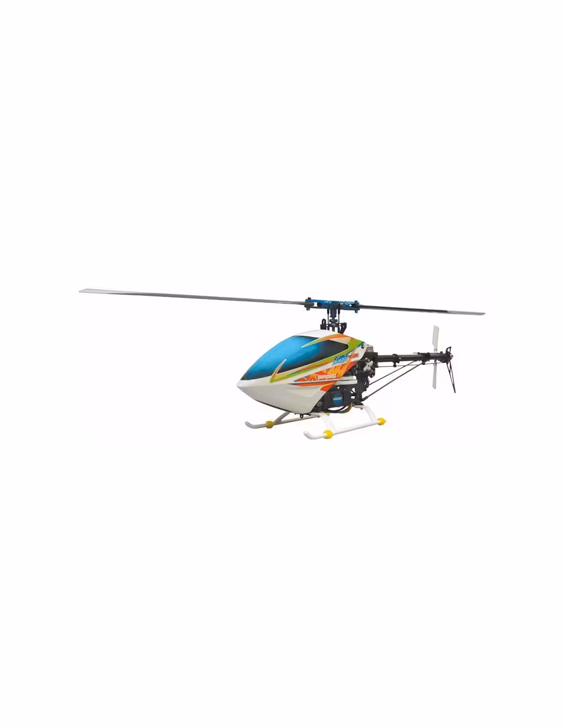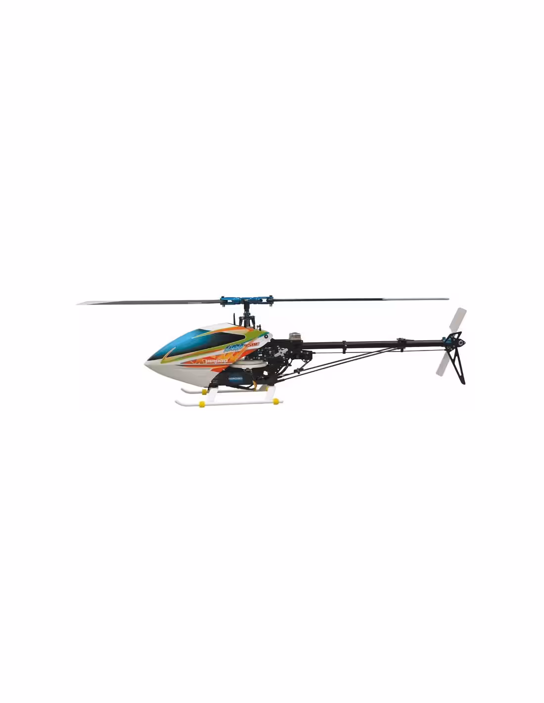 Hélicoptère électrique catégorie 450. Livré en kit à monter avec bulle peinte et décorée. Version à tête rotor sans barre de Bell pour des performances époustouflantes en vol 3D. Flancs en carbone, tête rotor, rotor arrière, plateau cyclique et wash-out en aluminium, pour une très grande fiabilité même sous des contraintes très importantes. Livré avec moteur électrique et variateur de vitesse électronique. Nécessite l'utilisation d'un gyroscope 3 axes (non-livré).