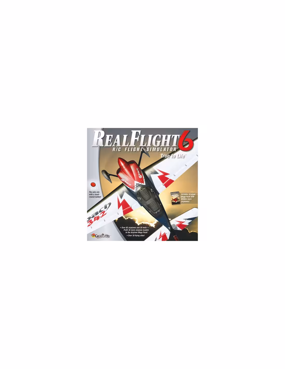 Le Real Flight G6 est Simulateur de vol pour avions, planeurs et hélicoptères. Cette version est optimisé pour les hélicoptères. Considéré comme le plus perfectionné et le plus réaliste des simulateurs disponibles sur le marché du modélisme. Avec d'origine un choix de 120 modèles (avions, planeurs, hélicoptères) et de 38 terrains de vol, dont 9 en qualité photo réaliste. Livré avec un disque supplémentaire "Mega Pack Hélico" contenant tous les hélicoptères inclus dans les "Extensions Pack" 1 à 8. Possibilité de créer ses propres modèles et de modifier les terrains de vol. Possibilité de voler avec 31 autres pilotes par connexion internet rapide et de faire du combat entre modèles ou sur cible.