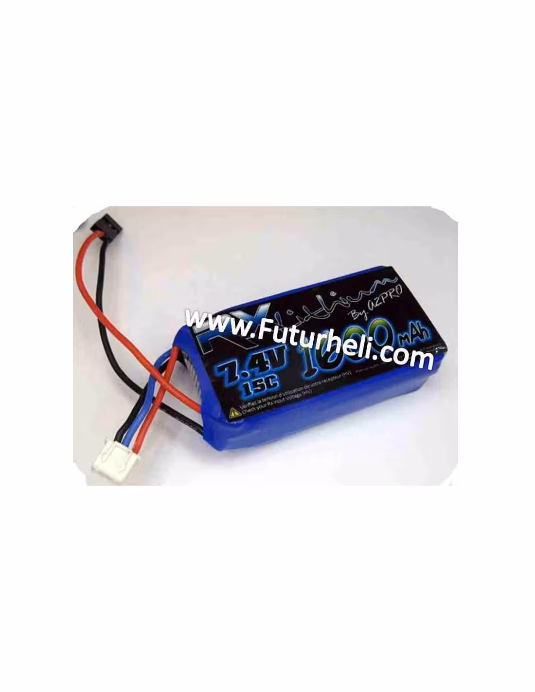 Attention la tension de ce pack d'accus Lipo est de 7,4V. Vérifier que le récepteur et les différents éléments comme les servos branchés supportent cette tension.
