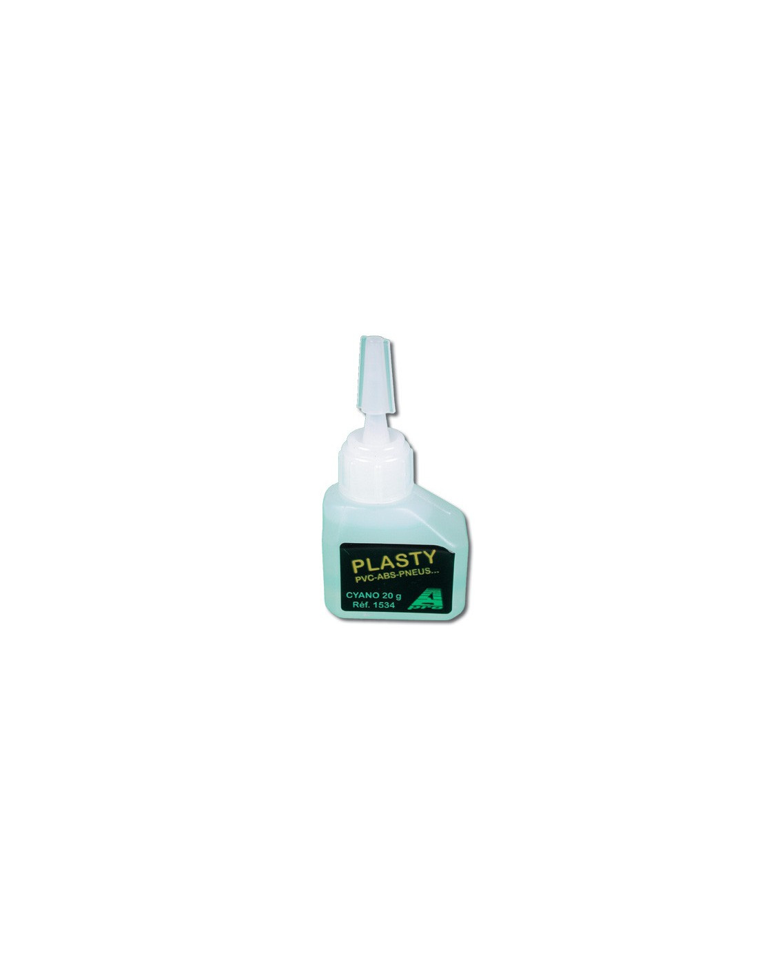 1534 Cyano PLASTY - 20 gr Colle cyanoacrylate spéciale pour pneus et plastiques. Viscosité : 3 cps Temps de prise : 5 à 10 sec. Colle toutes les matières plastiques et les caoutchoucs.