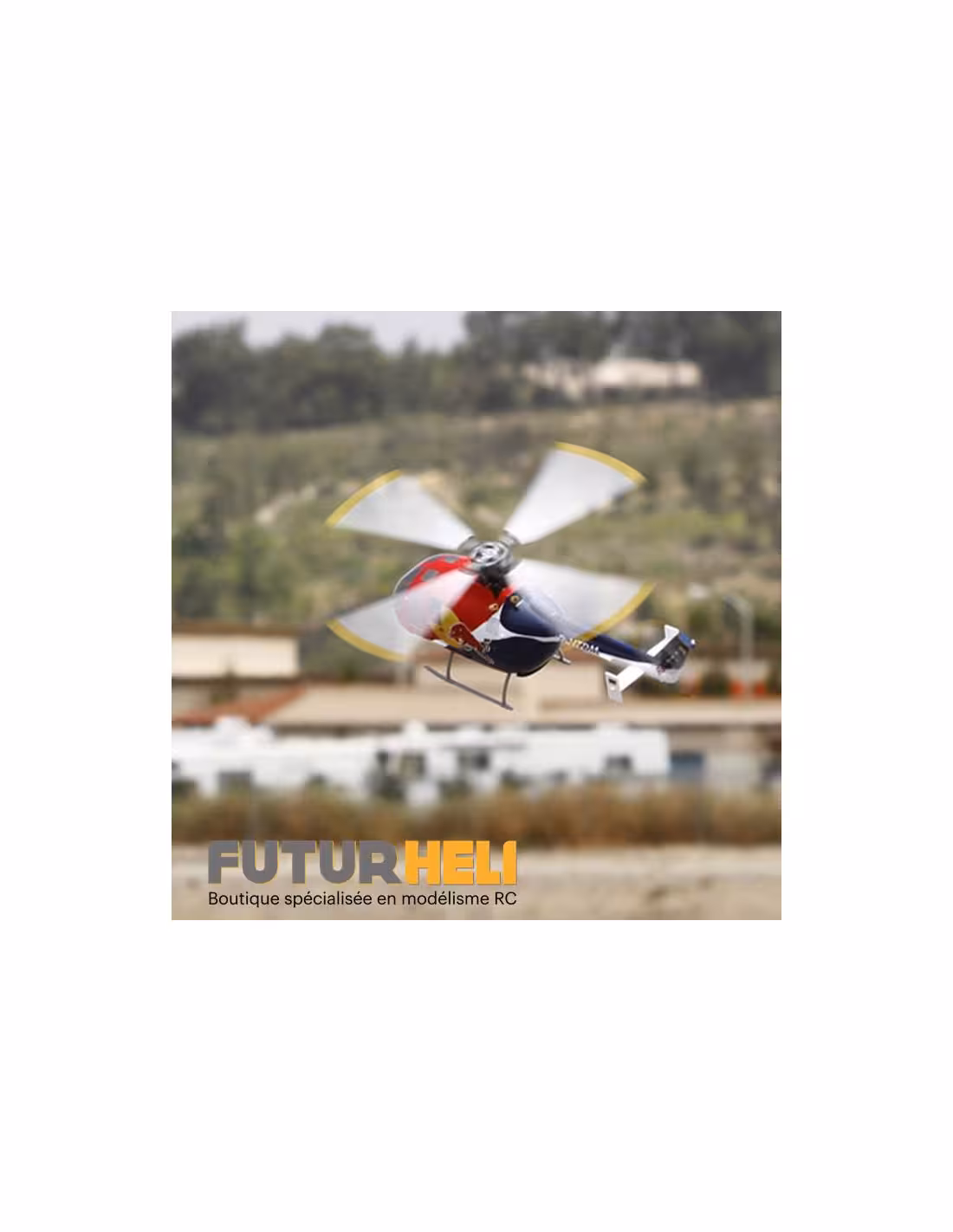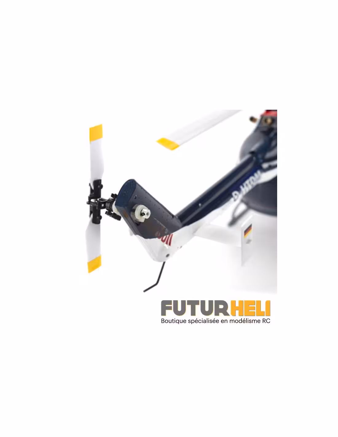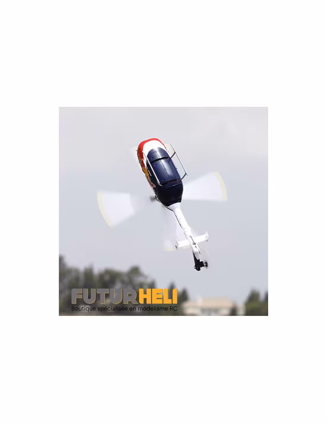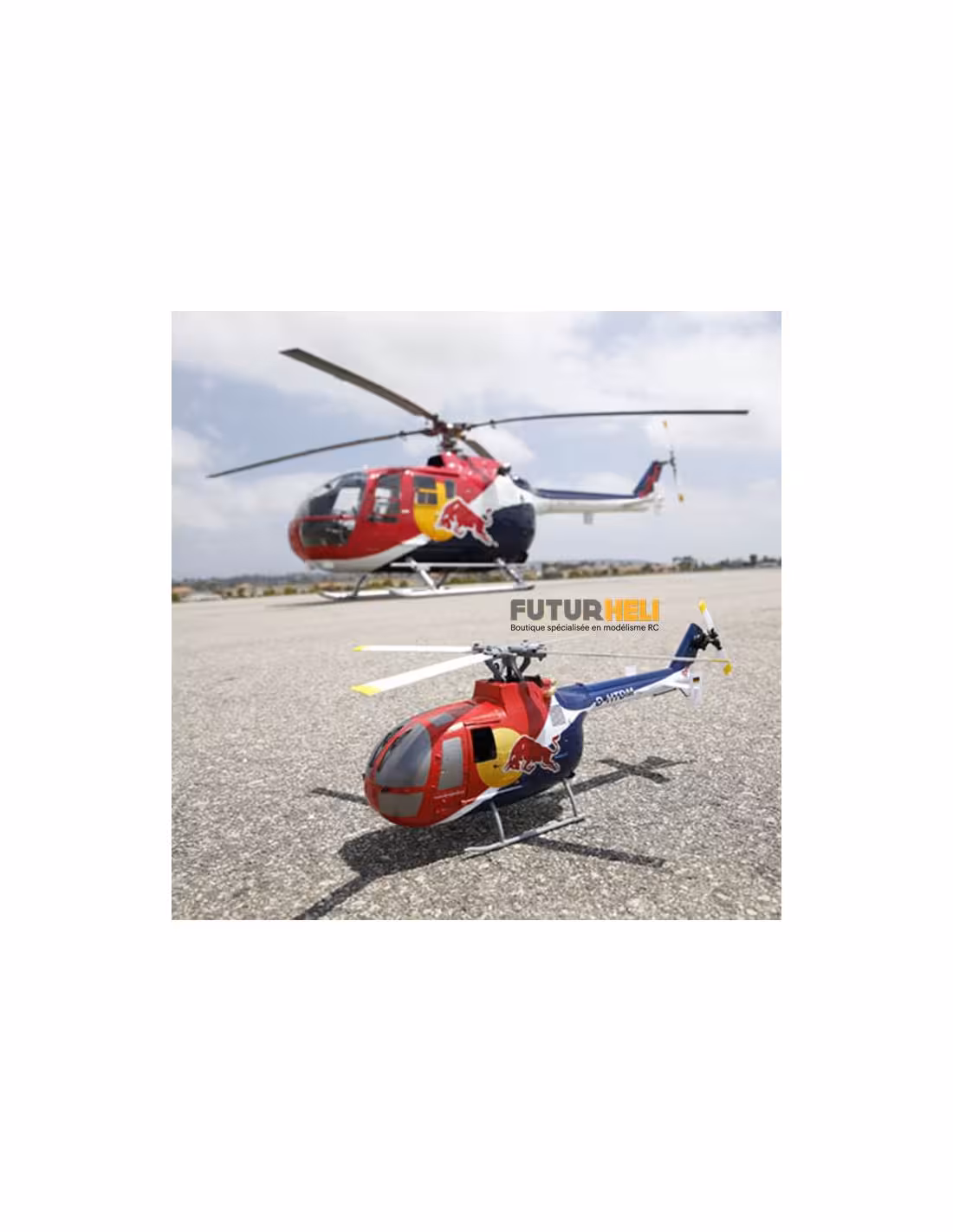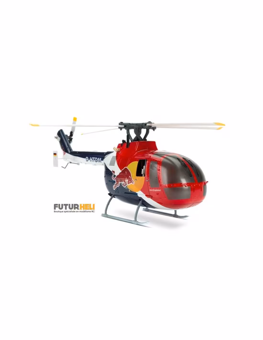Voici le dernier modèle de la gamme Blade, le Bo 105 CB Red Bull 130X, une superbe maquette d’hélicoptère au format 130, son fuselage comporte de très nombreux détails comme les rivets, les lignes de structure, les tuyères et bien d’autres. Sa tête de rotor quadripale tourne dans le sens antihoraire comme sur le modèle grandeur et sa puissante motorisation brushless vous permettra de reproduire les figures réalisées lors des shows acrobatiques.