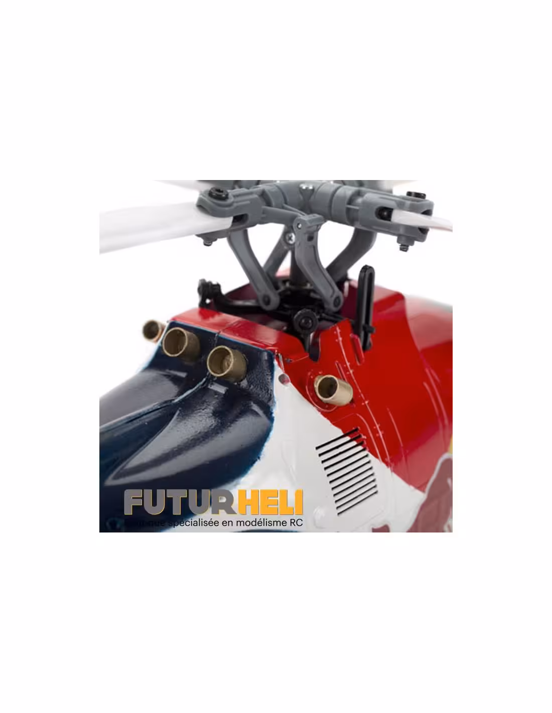 - Le fuselage comporte de nombreux détails et la rotation du rotor s’effectue dans le sens antihoraire comme sur le modèle grandeur